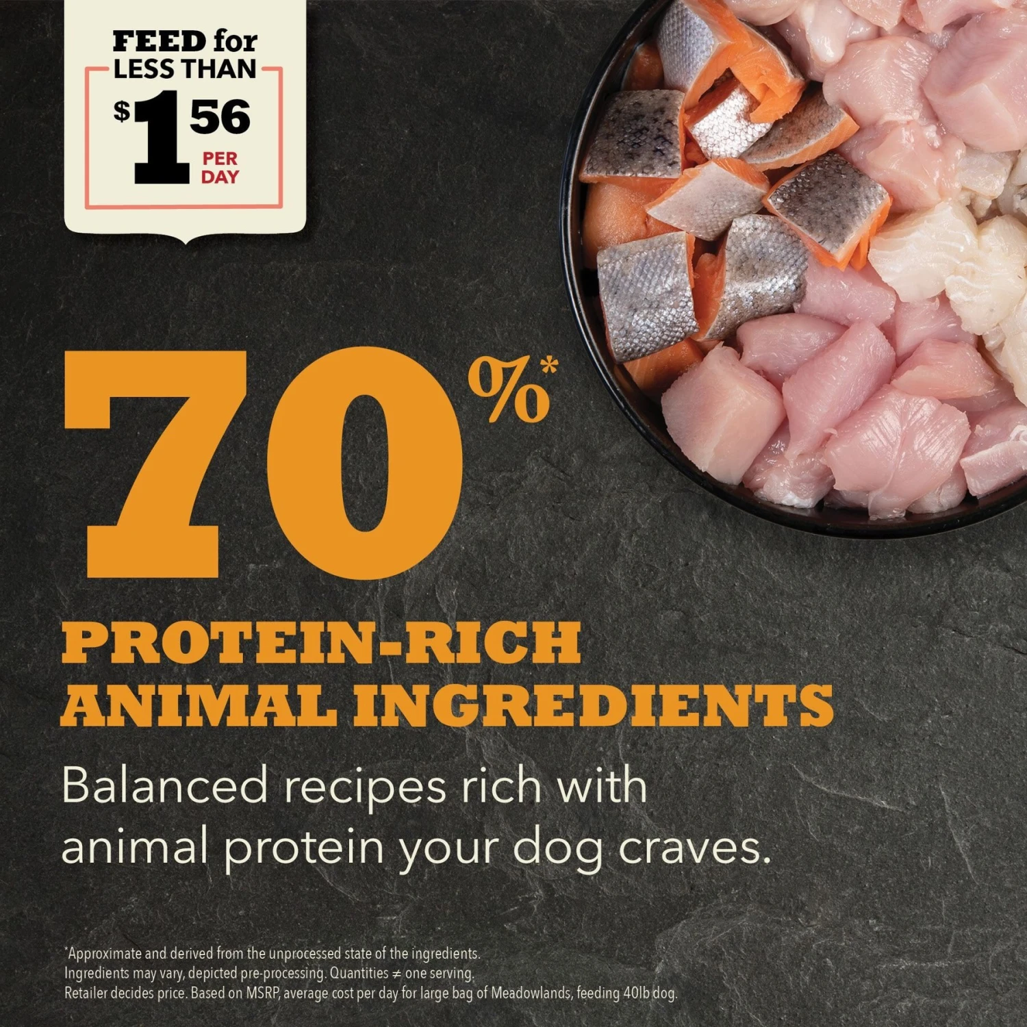 - Contains up to 70% high-quality animal ingredients and 30% wholesome fruits, vegetables and nutrients, plus added essential vitamins and minerals.