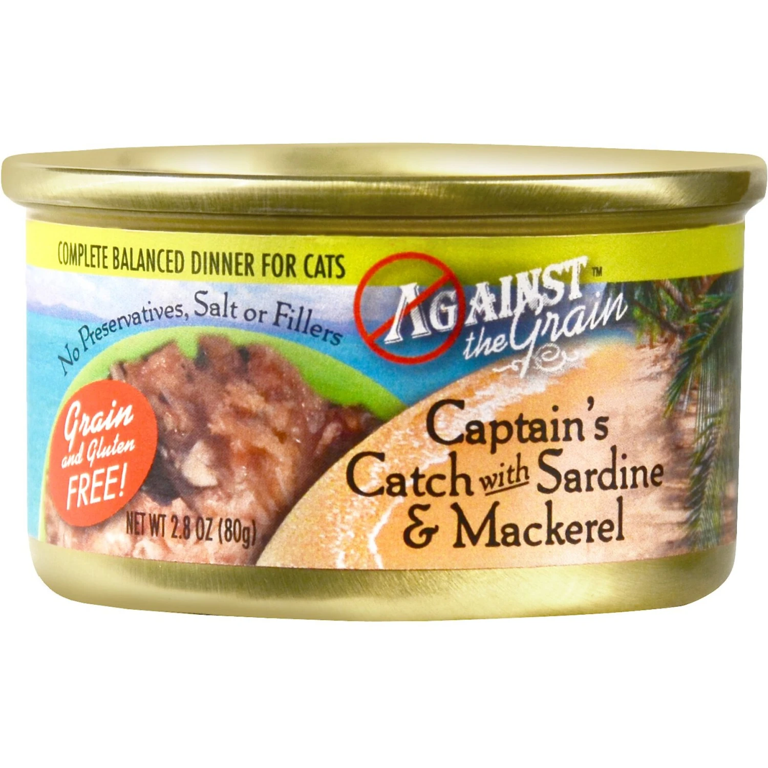 Your furry feline is a unique individual with her own personality, and she deserves to eat a one-of-a-kind meal like Against the Grain Captain’s Catch with Sardine & Mackerel Dinner Grain-Free Canned Cat Food. Featuring hand-packed sardines and mackerel as the first two ingredients, this special food is totally different! It’s fortified with vitamins, minerals and nutrients to provide complete and balanced nutrition, and it’s also grain-free and gluten-free, so it’s easy on her digestion and ideal for the cat with allergies or food sensitivities.