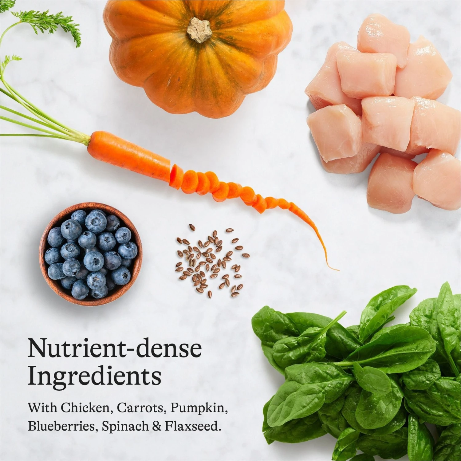 - Provides a precise blend of antioxidants and nutrient-rich fruits and vegetables, like pumpkin and blueberries.