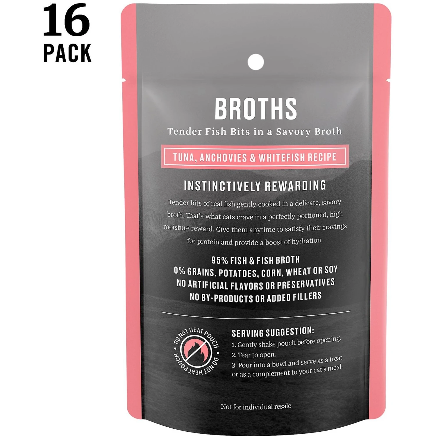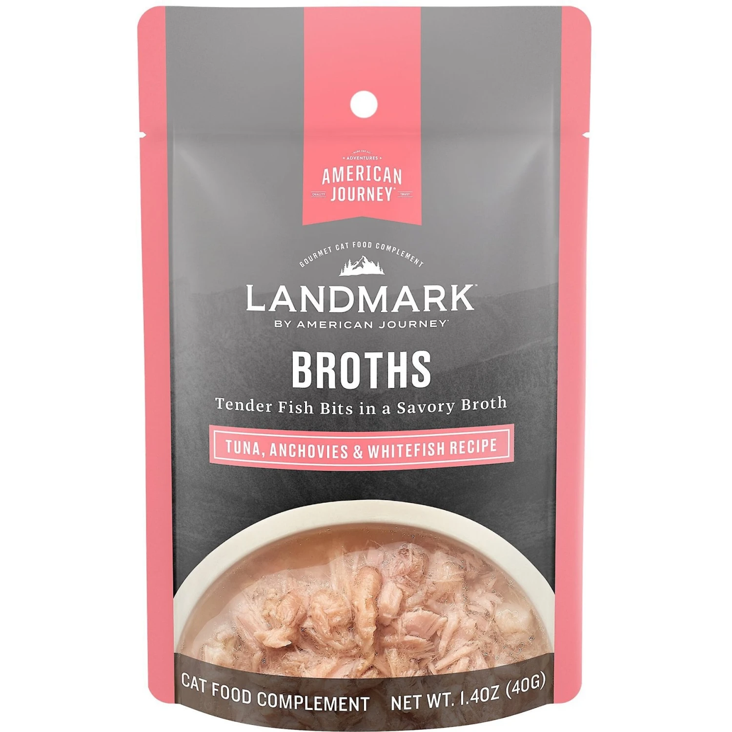 Indulge your cat with savory lickable broths from Landmark. Serve this recipe as a tasty, flavor-boosting topper for their everyday meals or on its own as a special, satisfying treat. No matter how you serve it, your cat is bound to love the multiple, premium proteins inside—including tuna, anchovies and whitefish—along with the irresistible, silky texture of the broth. Moist, lickable recipes like this one not only please a cat’s sophisticated palate, they also supplement feline hydration with a little extra moisture too. So, while they enjoy their wholesome reward, they’ll also get a boost of hydration to help keep them happy and healthy. Delicious, nutritious and moisture-rich—Landmark lickable treats are just the pampering experience your cat deserves.