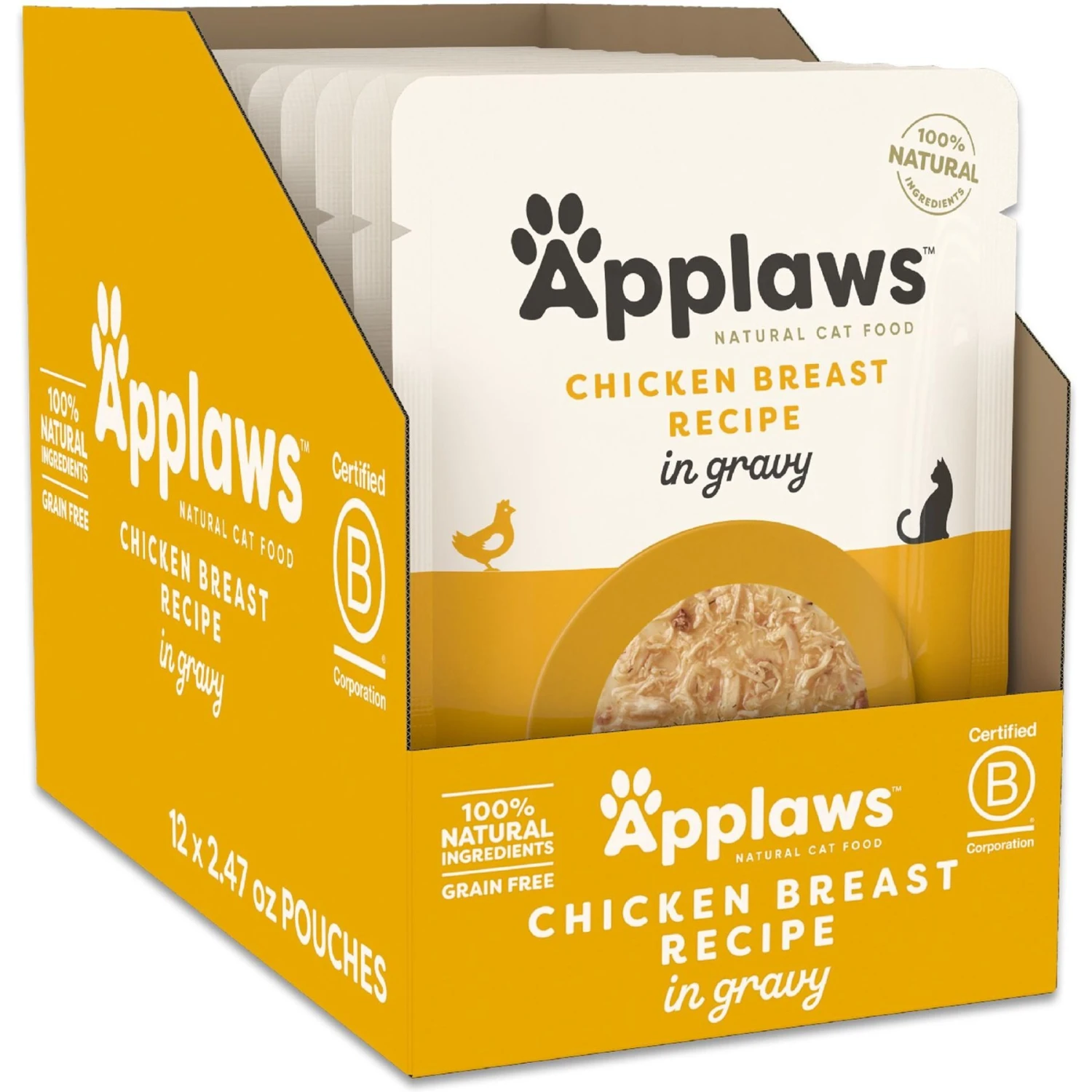 Your feline friend is going to purring with delight once she gets a taste of Applaws Chicken Flakes in Gravy Wet Cat Food. This whisker-licking recipe is a natural cat food complement—simply feed it with any of your cat’s favorite dry food for a complete and balanced diet. This whisker-licking recipe is made with natural ingredients and it contains a natural source of omega-3 fatty acids. Plus, you can feel good knowing that it is doesn’t contain any artificial colors, flavors or preservatives! You can feel confident feeding Applaws to your paw-tner.