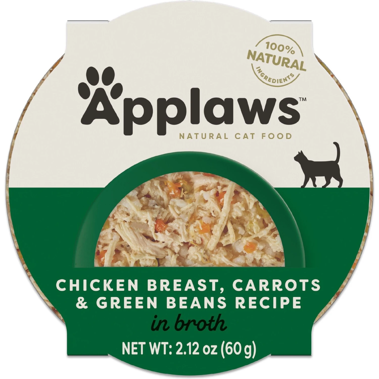 Your feline friend is going to purring with delight once she gets a taste of Applaws Chicken with Carrots & Green Beans in Broth Wet Cat Food. This whisker-licking recipe is a natural cat food complement—simply feed it with any of your cat’s favorite dry food for a complete and balanced diet. Crafted with limited ingredients, this whisker-licking recipe is made with natural ingredients and doesn’t contain any artificial colors, flavors or preservatives! You can feel confident feeding Applaws to your paw-tner.