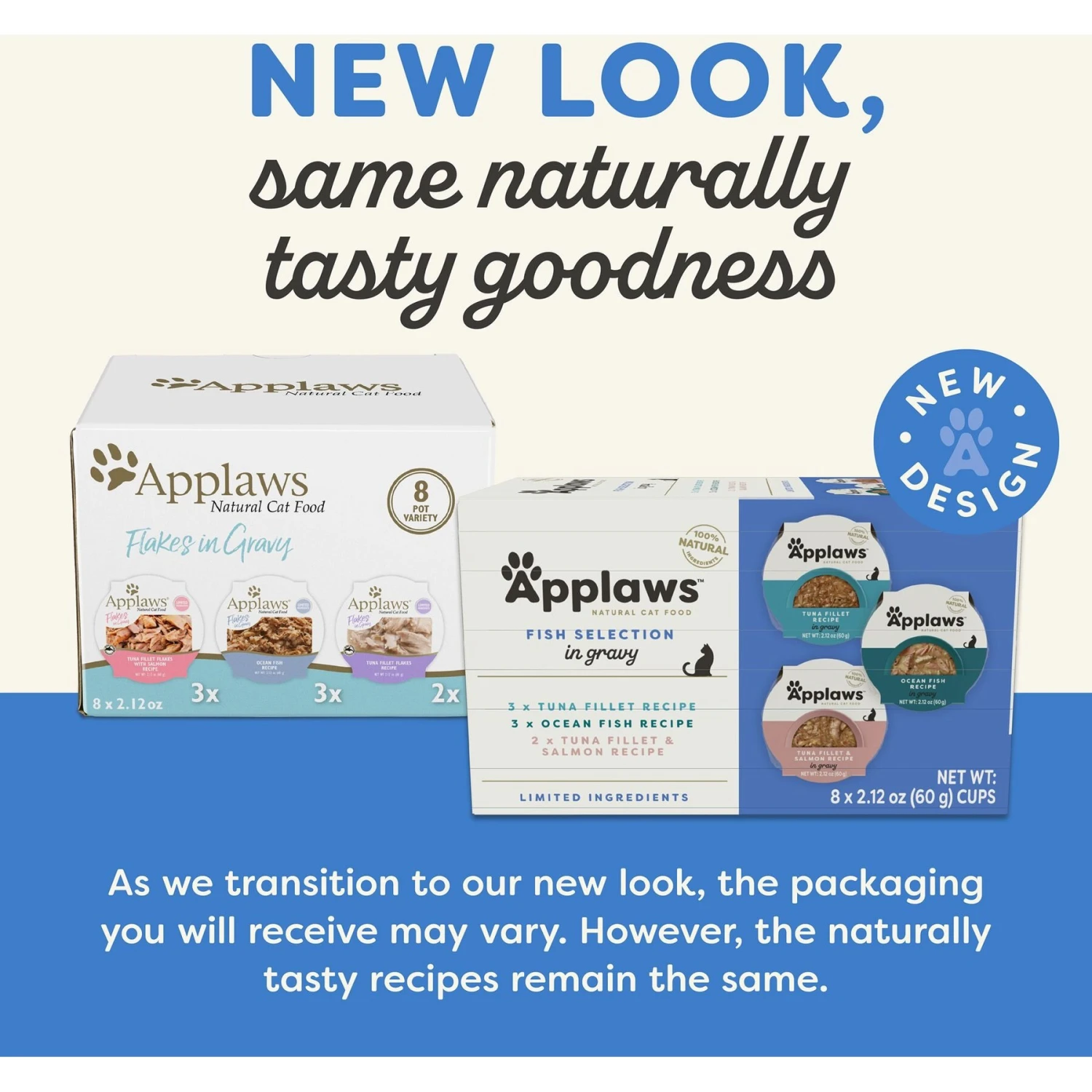 Applaws Fish Gravy Selection Multipack Limited Ingredient Cat Food Pots are packed with yummy ingredients your kitty will love, and nothing more. The limited ingredients include a variety of fish in tasty gravy for lean protein goodness. There are no fillers or artificial flavors. You can feed this food as a treat or reward with any dry food (sold separately) for a complete and balanced diet. Since this food is available in tons of flavors and textures, it’s a purr-fect way to add variety to your furbaby’s mealtimes. Best of all, there’s no need for a dish with a food pot. Just peel and serve!
