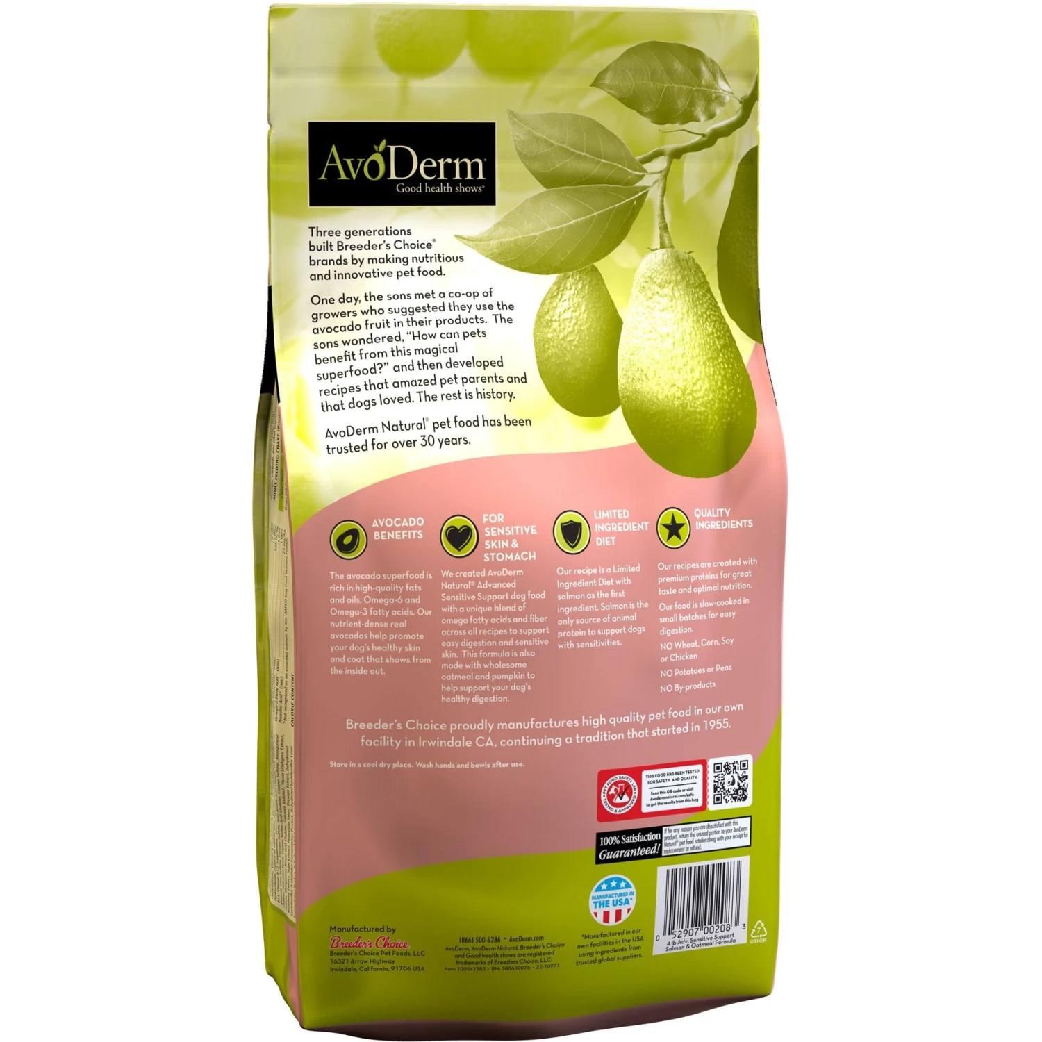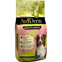 AvoDerm Advanced Sensitive Support Salmon & Oatmeal Formula Dry Dog Food contains real salmon as the only source of animal protein. Limited ingredient recipes with one animal protein source is paw-fect for pets who have food sensitivities and intolerances. This kibble also contains other recognizable ingredients, including oatmeal, pumpkin and fiber to promote easy digestion. And with omega fatty acids to support sensitive skin from the inside out, you can’t go wrong!