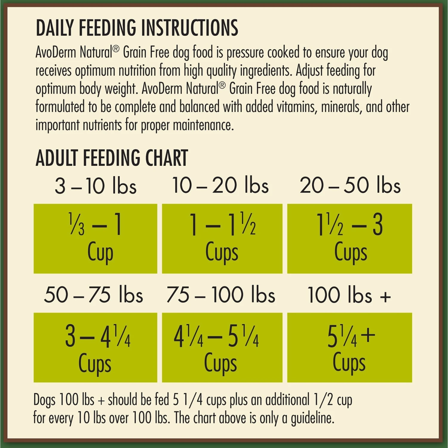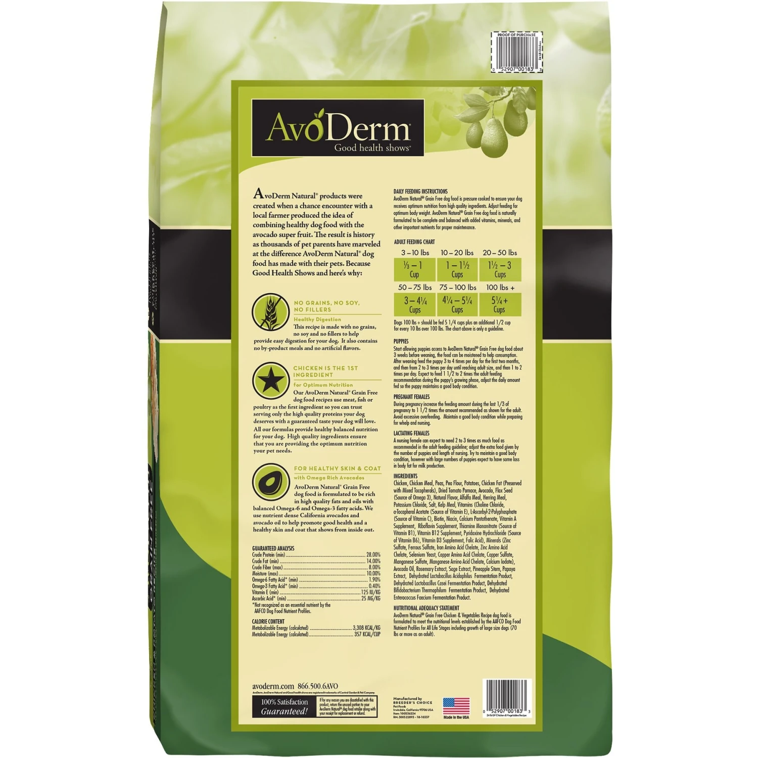 Your canine companion will go wild for the savory tastes of AvoDerm Natural Healthy Digestion Chicken & Vegetables Recipe Grain-Free Dry Dog Food. It’s crafted with high-quality chicken first, providing your pup with essential protein and delicious flavor. Omega-rich avocados help to keep her skin and coat healthy and shiny, while a blend of vitamins, minerals and antioxidants help support your pal’s health at any age. And you can have peace of mind knowing that there are zero artificial colors, artificial flavors or by-products in here—just all-natural nutrition for your favorite furry friend.