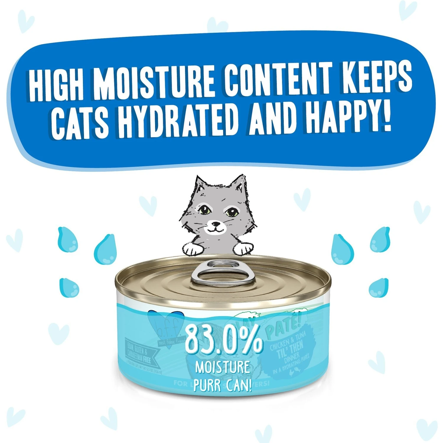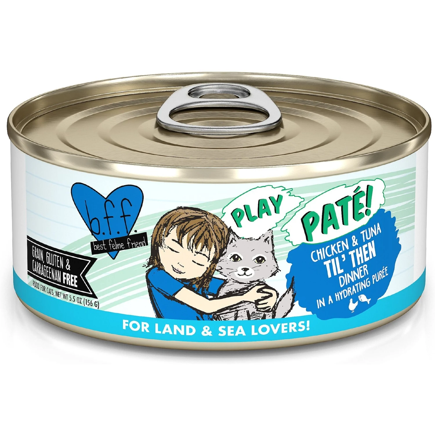 Be purr-pared for a clean bowl after your kitty finishes BFF Play’s Pate Lovers Chicken & Tuna Til’ Then Wet Cat Food. This land and sea duo is pureed to purr-fection and made with only simple, wholesome ingredients. He’ll find the taste and texture paw-fect, while you’ll appreciate it’s the whole kitten-caboodle with 82% moisture content that helps keep him hydrated. BFF knows what’s left out is just as important as what’s in the recipe, so there are no grains, gluten, carrageenan, MSG, artificial flavors, artificial colors or BPA. Plus, there are plenty of irresistible flavor options so you can switch up the menu and find your kitty’s fur-avorite.