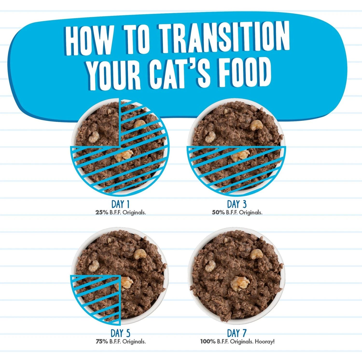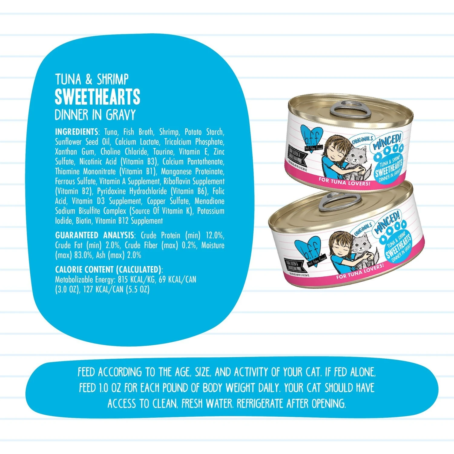 Turn meal time into yum time for your best feline friend with the BFF Tuna & Shrimp Sweethearts Dinner in Gravy Canned Cat Food. Made with wild-caught tuna and lip-smacking shrimp as the top ingredients, plus essential vitamins, taurine, omegas, amino acids and minerals, it provides a deliciously balanced, carnivore-based diet for all kitties. Since it’s packed with gravy made with broth, it’s a great way to add much-needed hydration to keep your little hunter healthy. Plus, it’s made with sustainably-sourced ingredients in state of the art food facilities with nothing artificial.