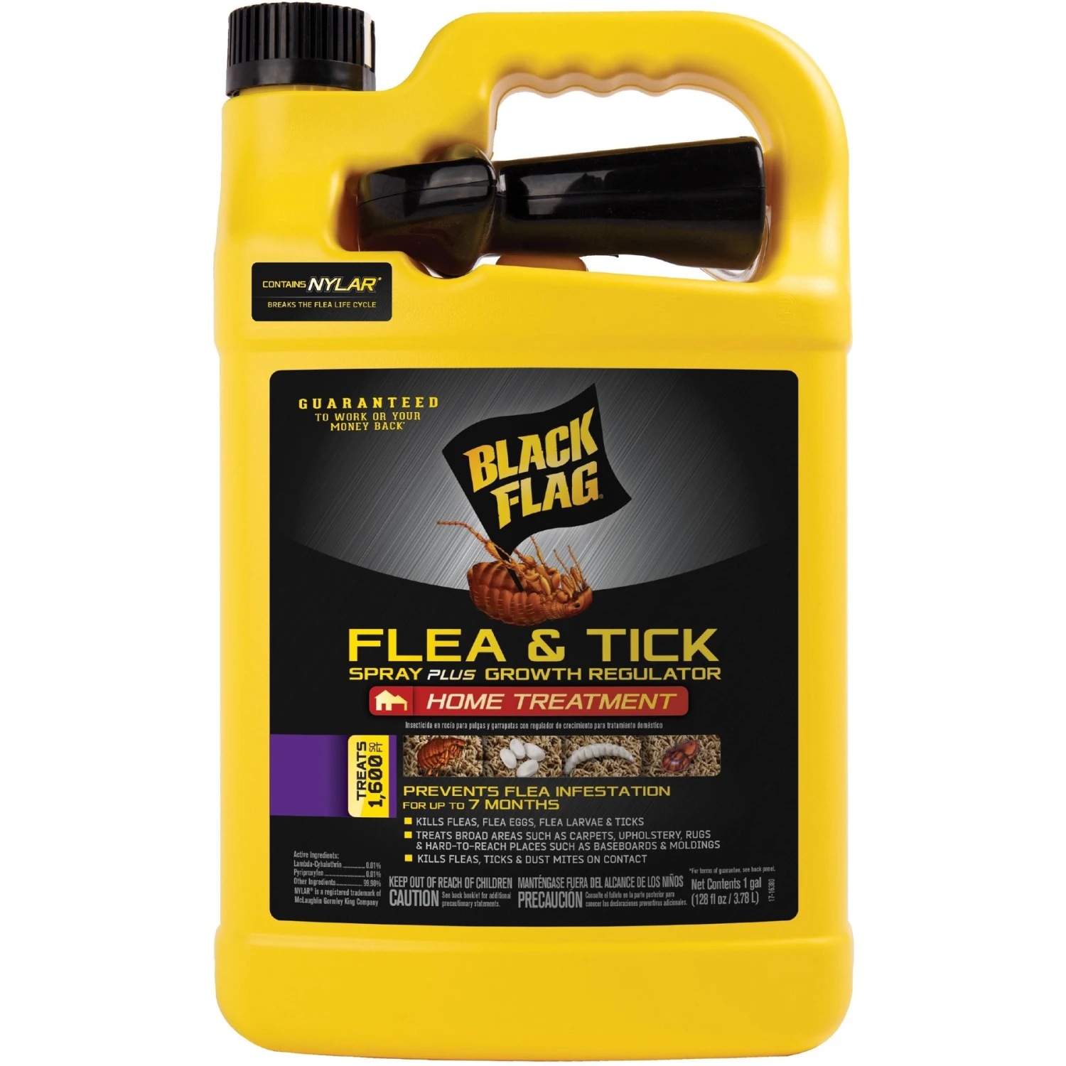 The Black Flag Flea & Tick Spray Growth Regulator Home Treatment helps rid your home of pesky invaders. This specially formulated spot treatment was designed to kill fleas, flea eggs, flea larvae and indoor ticks that may have taken over carpets, upholstery, rugs and hard-to-reach places like baseboards and moldings. A special added ingredient helps break the flea life cycle by preventing them from developing into biting adults for up to 7 months while also controlling carpet beetles and dust mites!