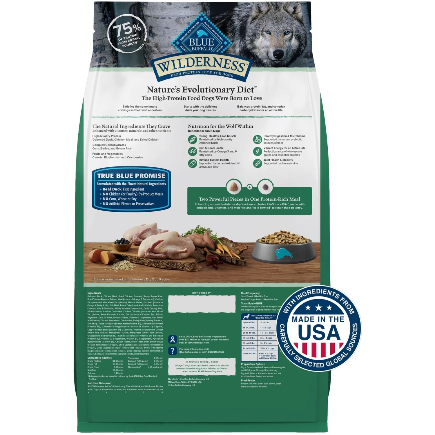 The Blue Buffalo Wilderness Duck Adult Dry Dog Food is packed with the nutrition that your senior best friend needs for a happy, healthy life. It starts with high-quality protein from real duck to help your furbaby build and maintain healthy muscles. Complex carbs from tasty grains help to fuel your best friend’s energy needs for paw-some games of fetch, long walks and more. This food also contains omega-3 and omega-6 fatty acids to promote skin and coat health. Vitamins, minerals and antioxidants support your furbaby’s immune system health, too.