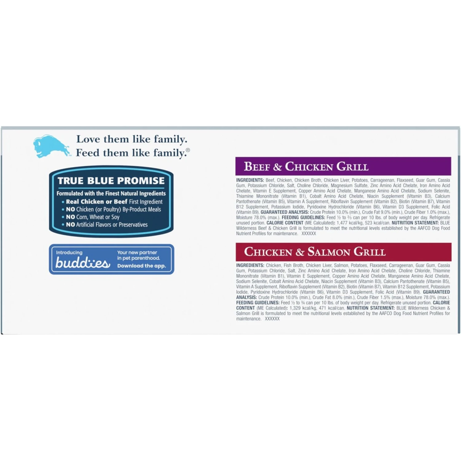Blue Buffalo Wilderness Beef & Salmon Variety Pack Wet Dog Food,12.5-oz can, case of 6—With the Blue Buffalo Wilderness Beef & Salmon Variety Pack Wet Dog Food, you can change up your furbaby’s mealtimes so they’re full of paw-some variety. This pack contains the Beef & Chicken Grill and Chicken & Salmon Grill recipes. These-grain free foods are su-paw tasty and packed with real beef and chicken. They make a delicious treat, can be mixed into dry foods to make them extra interesting or can be fed as a meal on their own. These canned foods are made with quality natural ingredients enhanced with vitamins and minerals to support your furbaby’s health. They’re free of chicken or poultry by-product meals, corn, wheat or soy and artificial flavors or preservatives.