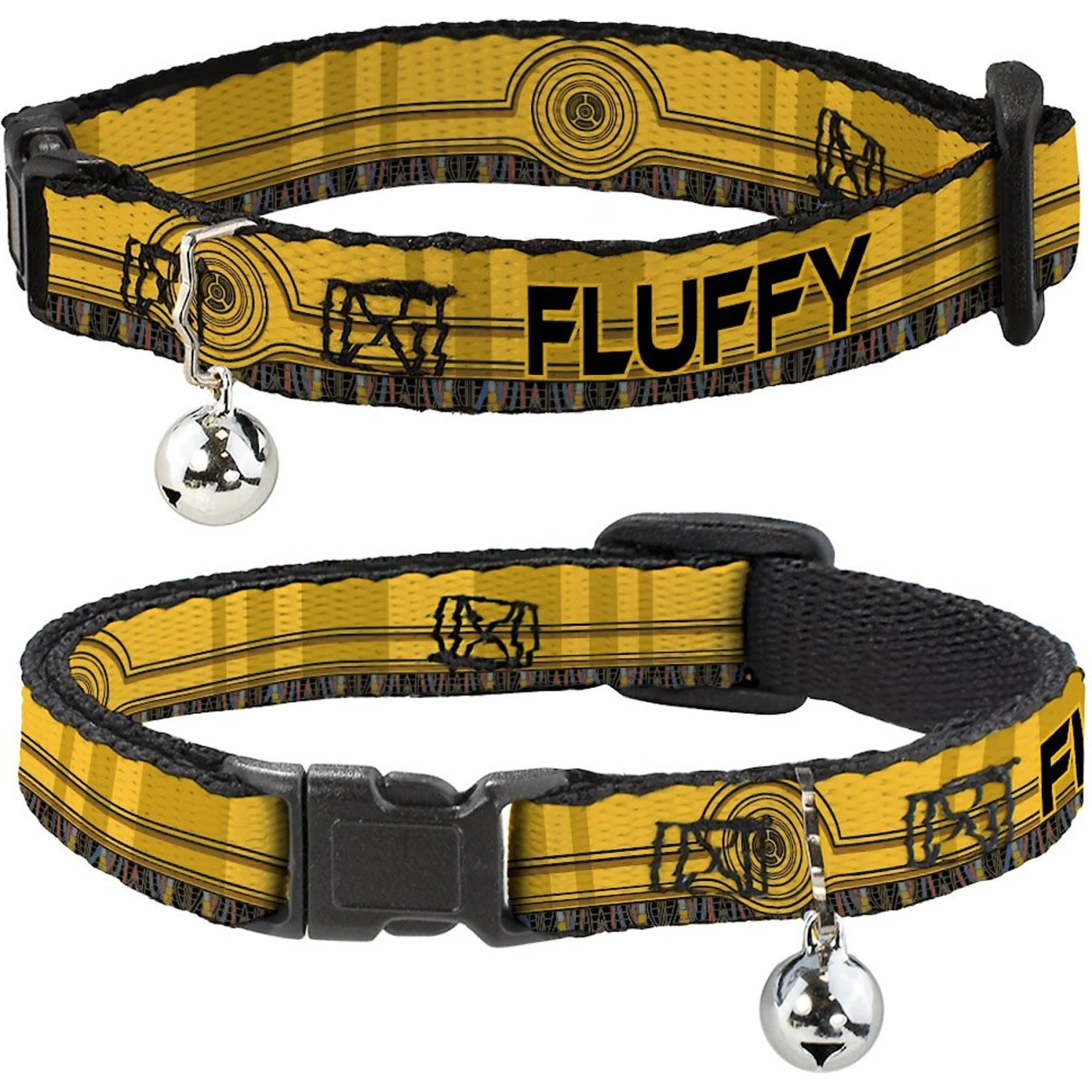 Remember to measure your pet for the paw-fect fit. Show off your love for your favorite characters on your favorite pet with the Buckle-Down Personalized Star Wars C3 Breakaway Cat Collar with Bell. Crafted with durable, high-density polyester, a plastic breakaway clip, and a handy bell—this collar is made for the cat on the move with places to go and people to see. Plus, you can get the matching leash (sold separately) for extra flair during those times when you need it!