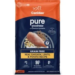 Give your dog the real, simple nutrition he deserves with CANIDAE Grain-Free PURE Limited Ingredient Chicken, Lentil & Pea Recipe Dry Dog Food. Formulated with just eight wholesome ingredients to nourish all canines including those with sensitivities, this recipe boasts chicken as its first ingredient for a protein-packed real meal your pup will love. Wholesome veggies provide a powerhouse of nutrition, while a blend of probiotics, antioxidants, fatty acids and vitamins and minerals support your buddy’s vital systems and promote his ongoing good health. With never any fillers or problem additives including corn, wheat, soy, grain or artificial ingredients, this food is paw-some for clean-living canines and grr-eat for dogs of all ages and types!
