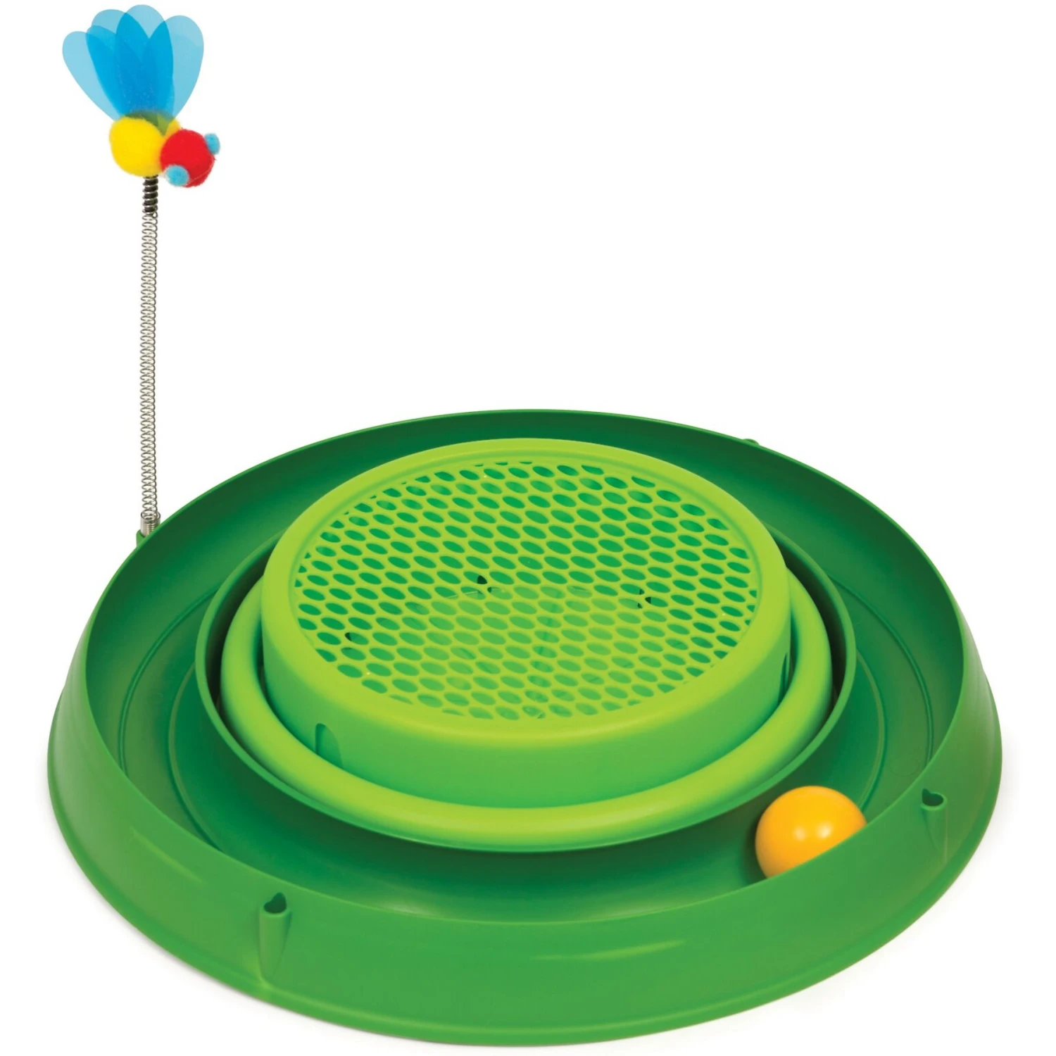 Round and round it goes—where it stops, only your kitty knows! This Catit Play Interactive Grass Circuit Ball Cat Toy offers 3-in-1 play for your frisky feline. Outfitted with a ball-and-track area, grassy center and a bouncing, spring-mounted bee, this toy provides a variety of good-for-kitty activities and features. Watch as he gleefully pounces from each play area and nibbles on yummy, cat-friendly grass—add some of the included catnip to further boost your kitty’s playtime. This circuit ball toy is purr-fect for your adventure-loving feline and encourages a healthy, active lifestyle.