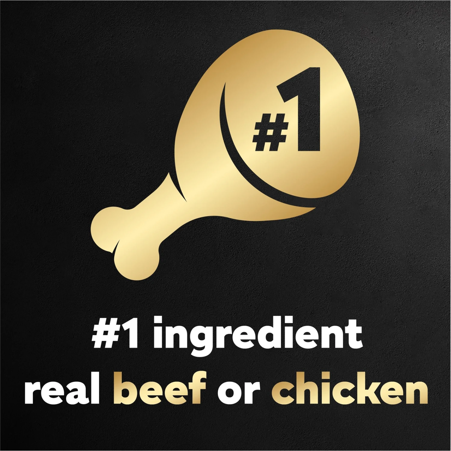 - Real chicken or beef is the number one ingredient in each of these meaty meals.