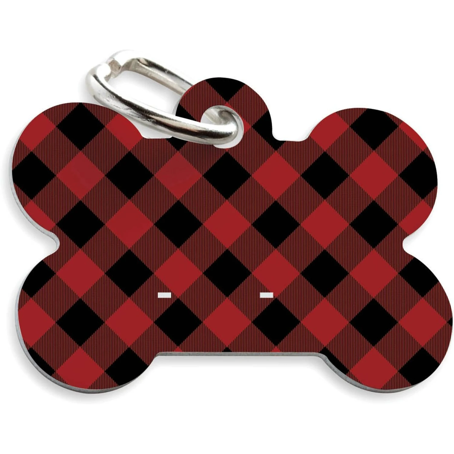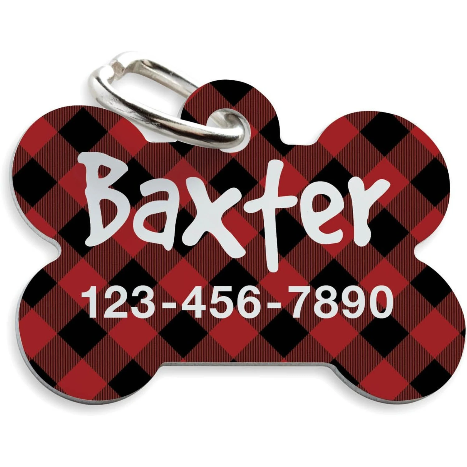 Keep your furbaby safe and stylish with the Custom Personalization Solutions Black & Red Buffalo Check Personalized Pet Tag! This durable aluminum pet ID tag displays your pet’s name and your phone number on a buffalo check background. Each tag includes a jump ring to attach the tag securely to your pal’s collar (sold separately). The handy tag not only looks cute, but can help others contact you if your furbaby is found away from home. Get one for your pet or any furry friend in your life!