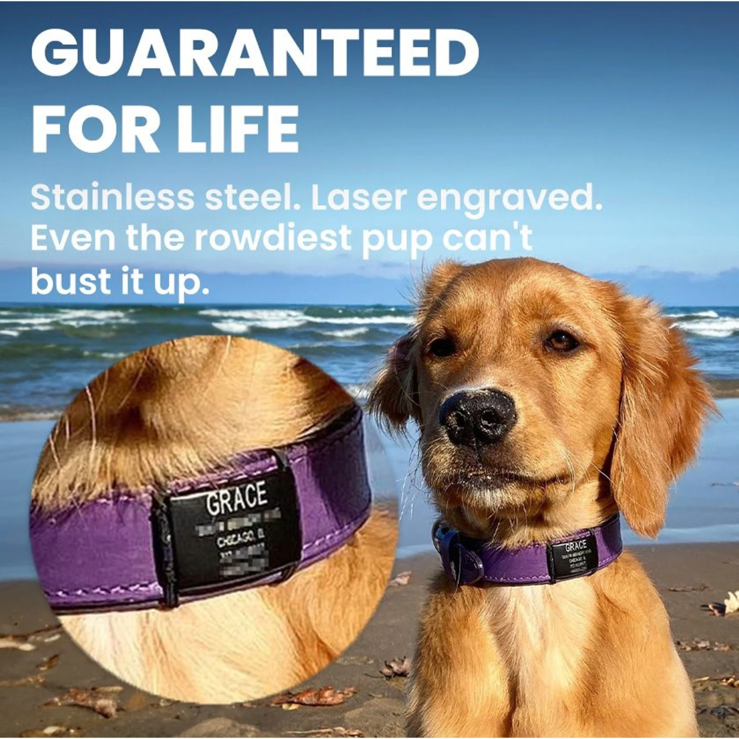 With the DOG iD Personalized Dog ID Tag you won’t have to mingle with the jingle, hang with the hang down, or wrestle with readability! This pet ID is designed to fix all the frustrations of traditional ID tags. Use the dual-ended elastic bands to safely secure the tag to your dog’s collar or harness (sold separately). The flat design won’t dangle or jingle, and it resists snagging for added safety. Plus, your information is laser engraved onto medical-grade stainless steel, so there’s no need to sweat moisture or friction wiping the important details away. Enjoy your next adventure with confidence and DOG iD!
