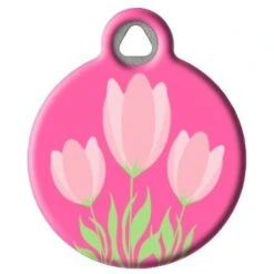 Dog Tag Art Pink Tulips Personalized Dog & Cat ID Tag