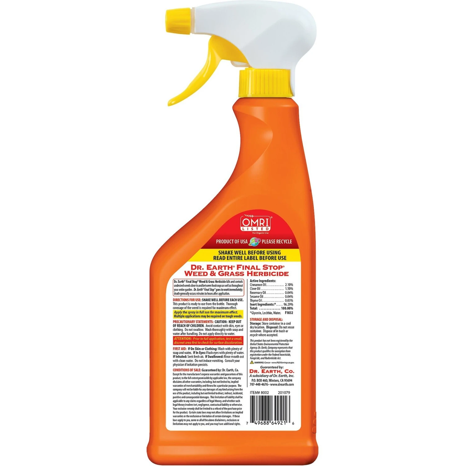 Weed out unwanted plant life with Dr. Earth Final Stop Weed & Grass Killer. This pet and people-safe, ready-to-use spray is designed to kill weeds naturally using a potent blend of essential oils that work synergistically. No need to worry about harmful chemicals coming into contact with you and your pets – Dr. Earth Final Stop Weed & Grass Killer contains no synthetic chemicals or toxic ingredients. Keep your outdoor area weed-free and frolic-friendly!