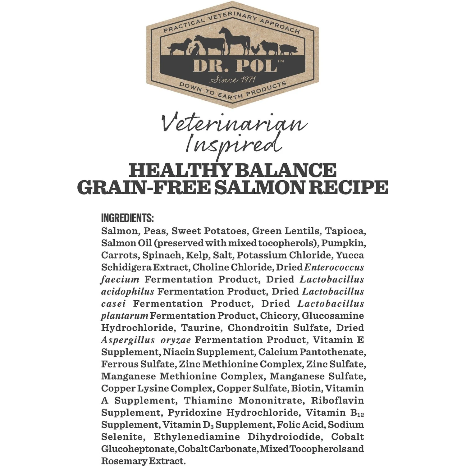 Nourish your dog from the inside out with a bowlful of this Dr. Pol Healthy Balance Grain-Free Salmon Recipe! This grain-free canine kibble is veterinarian inspired and suitable for pups of all breeds and ages. It’s crafted in the USA with a single animal protein, real salmon, and is completely free from meals, by-products, GMOs, and corn, wheat and soy. Plus, with nutrient-rich superfoods and added prebiotics and probiotics, you can’t go wrong!