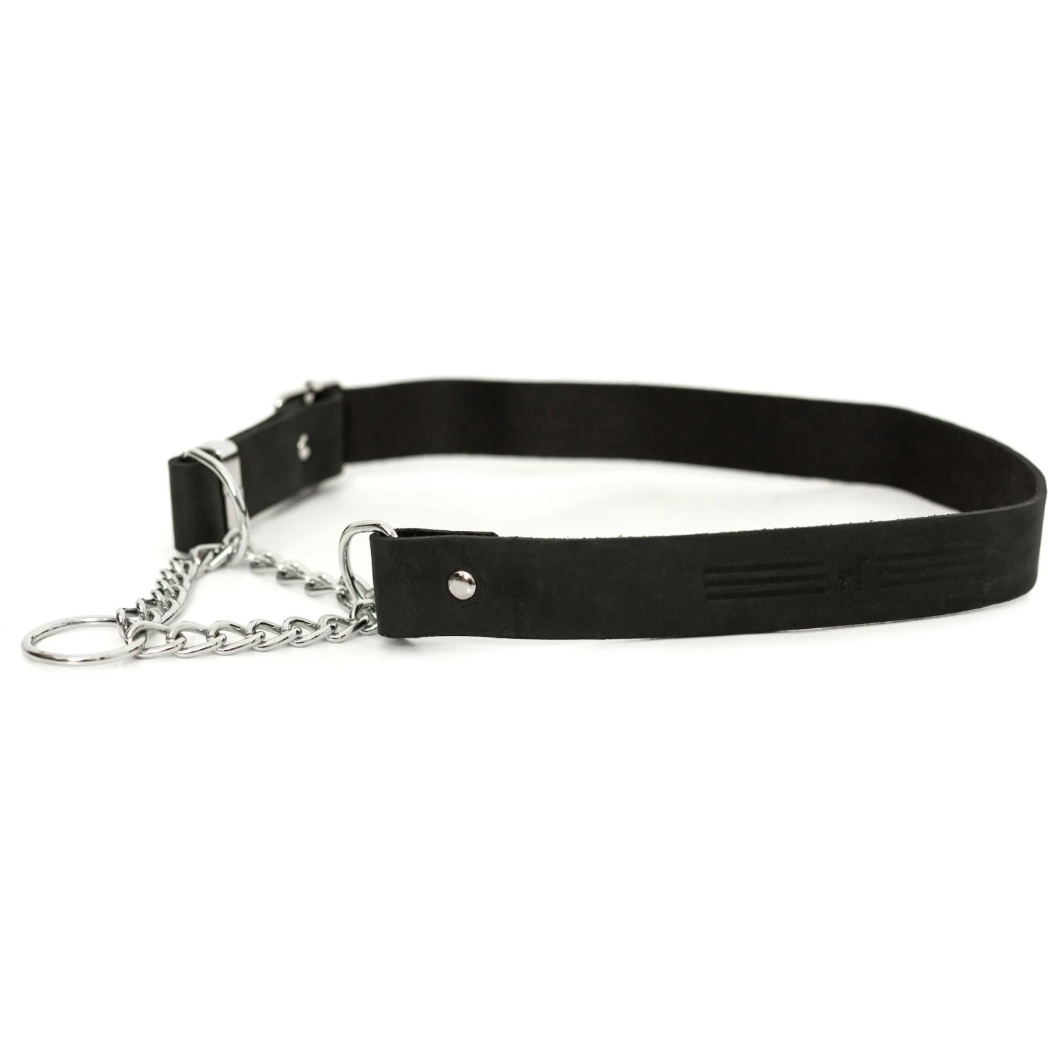 Remember to measure your pet for the paw-fect fit. The Euro-Dog Modern Leather Martingale Dog Collar can be found at the intersection of comfy and cool! This modern collar with American leather and European steel hardware creates a controlled experience as you walk your dog in parks, around the block or anywhere with a crowd. Humanely train your canine companion with the steel chain attached. The chic look isn’t finished without adding a touch of paw-sonality! “Chews” from a variety of colors to find what best suits your sidekick.