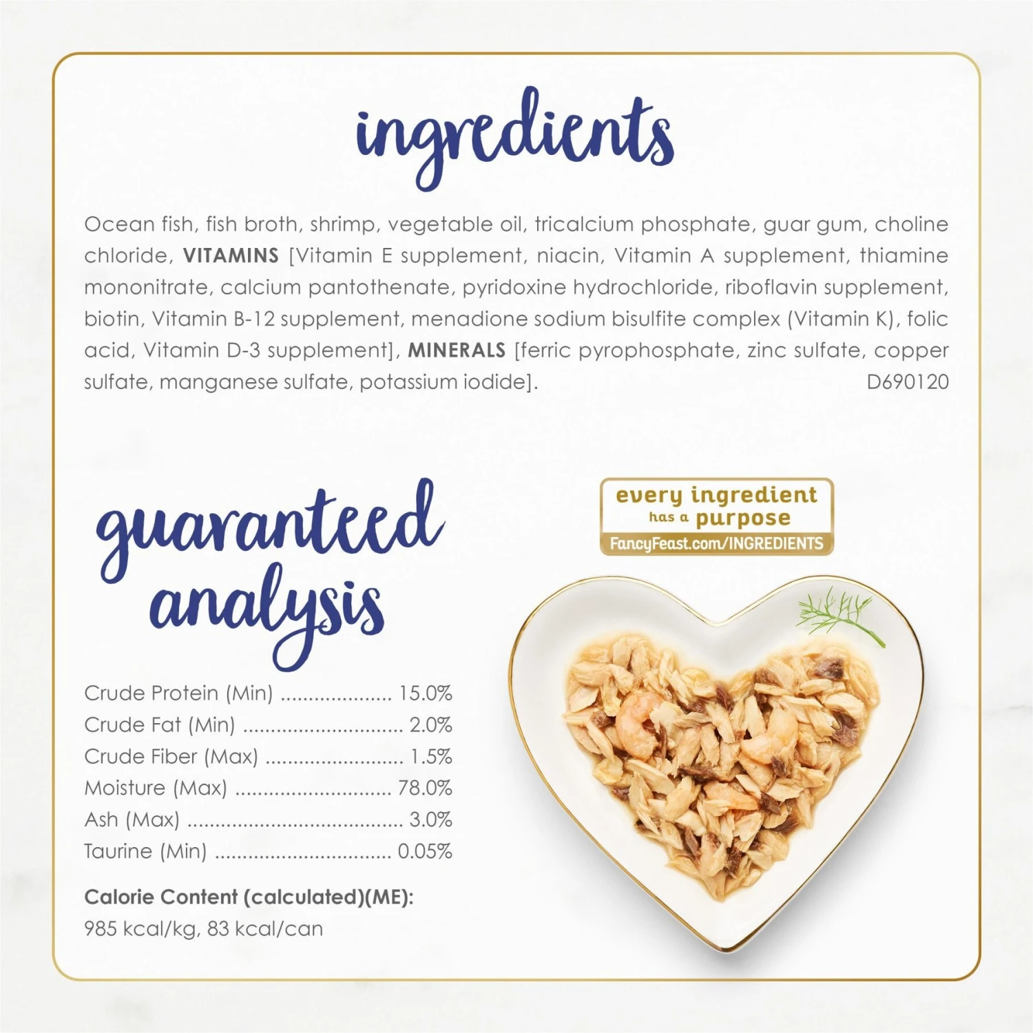 Treat your special kitty to a fishy feast with Fancy Feast Flaked Fish & Shrimp Feast Canned Food + American Journey Landmark Broths Seafood Variety Pack Wet Cat Food Complement Pouches. Fancy Feast’s Flaked Fish & Shrimp offers everything your cat needs to look and feel his best, like protein, antioxidants and healthy omegas. Plus, the formula is enhanced with vitamins, minerals and essential taurine for nose-to-tail wellbeing in every bite. Since it’s made with real broth, it also provides moisture to keep your pal hydrated and support his urinary health. Landmark Broths are a tasty, flavor-boosting topper purr-fect for everyday meals or as a special, satisfying treat. No matter how you serve them, your cat is bound to love the craveable seafood proteins in this variety pack—including salmon, tuna, anchovies, shrimp and whitefish.