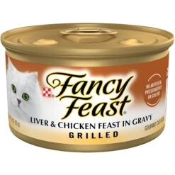 Give your kitty a gourmet mealtime experience with Purina Fancy Feast Grilled Wet Cat Food Liver and Chicken Feast in Wet Cat Food Gravy! Made without artificial colors or preservatives, this delicious premium food contains real, high-quality ingredients delivering 100% complete, balanced nutrition. Developed in partnership with expert nutritionists, this high-protein gourmet wet food offers a uniquely scrumptious taste experience for your feline friend. Crafted with real liver and chicken in a light, savory gravy and a blend of vitamins and minerals, even your most purr-snickety cat will love it!