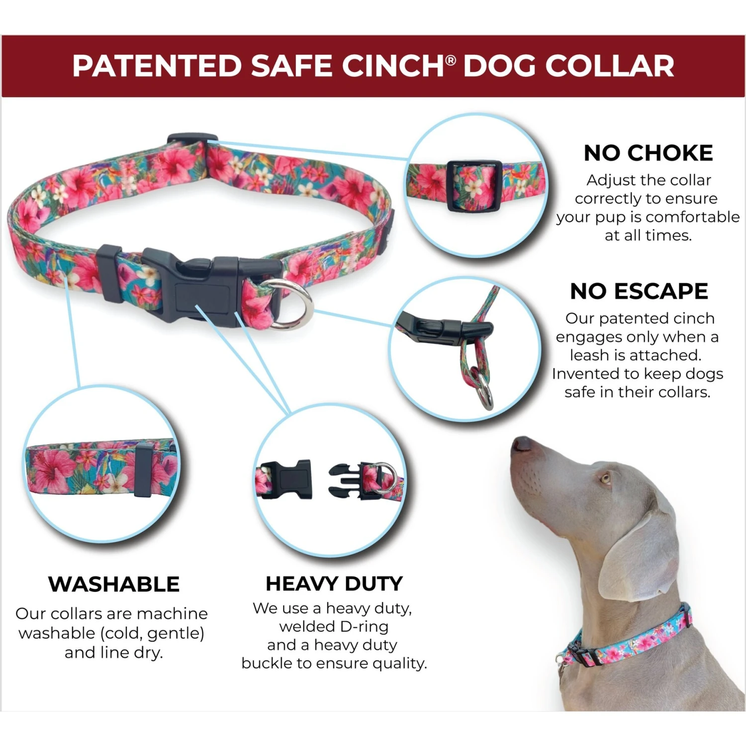 Remember to measure your pet for the paw-fect fit. Keep your canine companion safe and comfortable on your walkies with FearLess Pet Safe Cinch Dog Collar! This everyday collar features a safety cinch that closes enough to make sure your pal will not slip out while remaining loose enough to prevent uncomfortable tightness and choking. Featuring a heavy-duty D-ring for leash attachment and a strong side-release buckle, this durable collar protects your pup both on and off leash. The bright polyester fabric comes in a variety of long-lasting colors so your pooch can show off his personality on the go! Plus, it is made with durable stitching, so this collar can remain a staple in your pal’s wardrobe for many adventures to come. While this collar is paw-fect for everyday wear and walks, it is not ideal for tying your pal up outside.