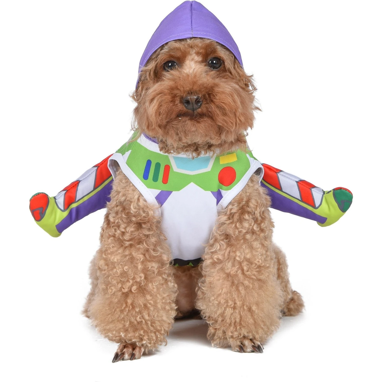 Remember to measure your pet for the paw-fect fit. Let your barking bestie dress to impress—in infinity and beyond—with the paw-sitively adorable Fetch for Pets Disney Halloween Toy Story Buzz Lightyear Dog Costume! This fetching costume is made from ultra-soft, high quality, and lightweight polyester fabric. It features a paw-some astronaut hood with wing flaps. It’s also machine washable on the cold cycle and can be line dried, which is a treat for pet paw-rents as well!