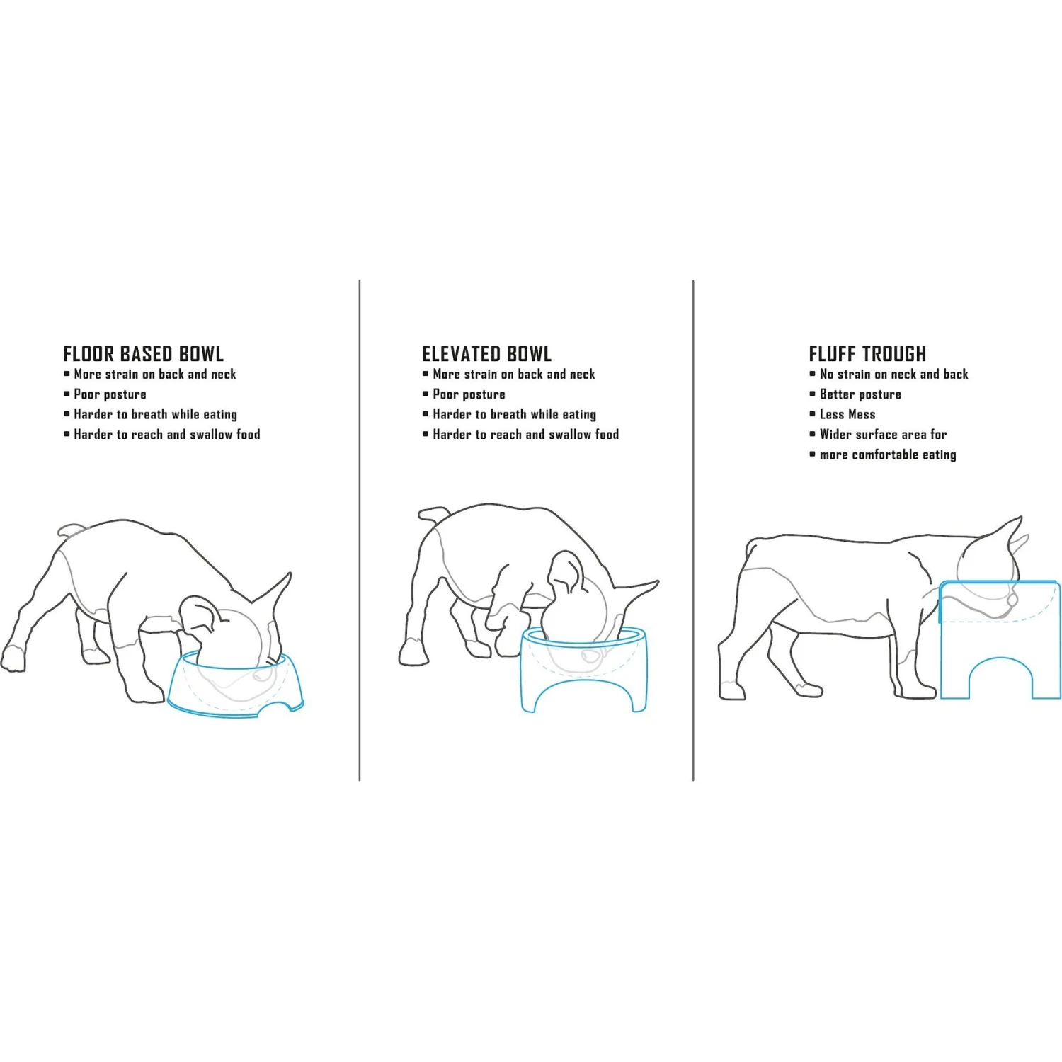 - Elevated design helps minimize neck strain and makes breathing easier during your fur-iend’s dinner.