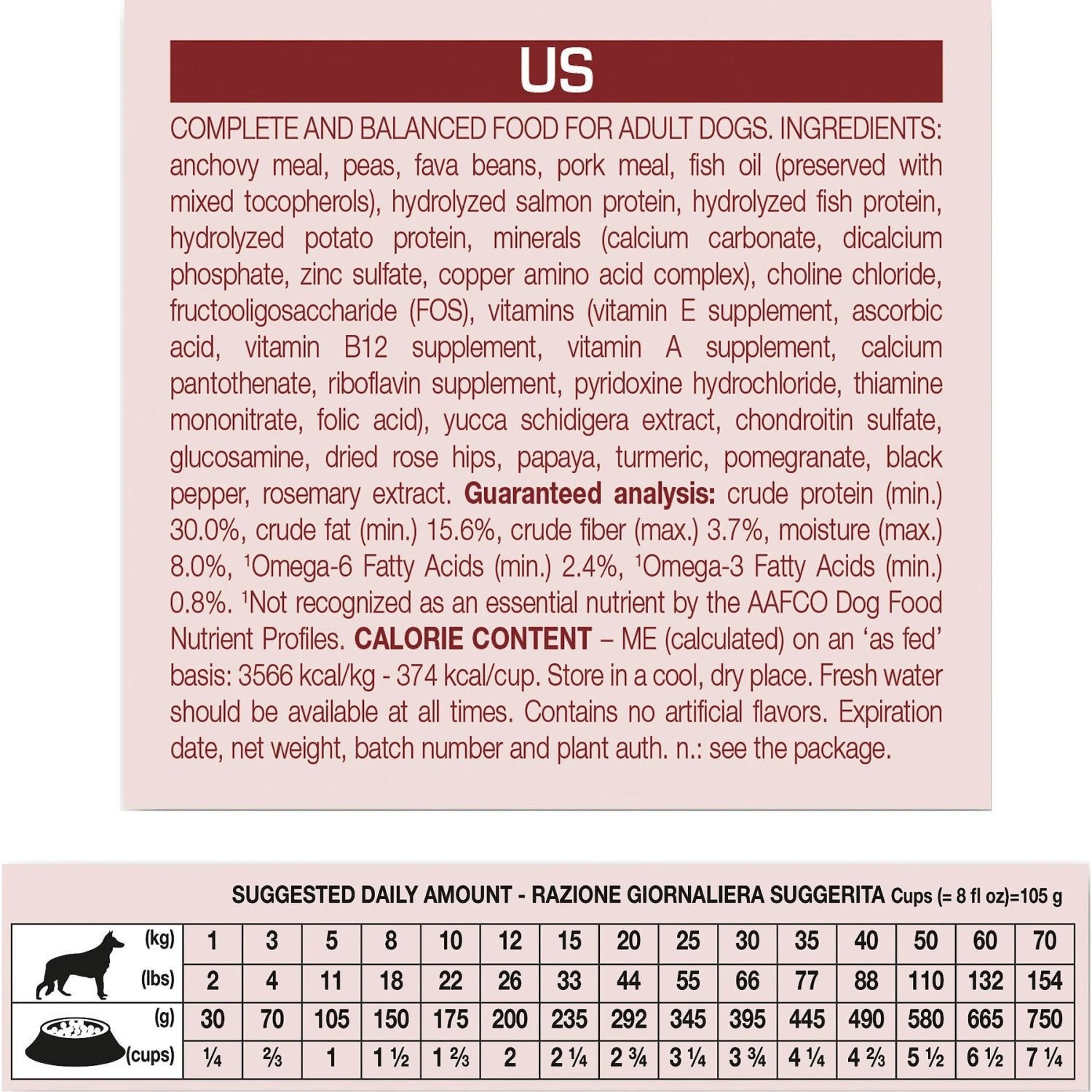 - First ingredient is wild-caught anchovy meal.