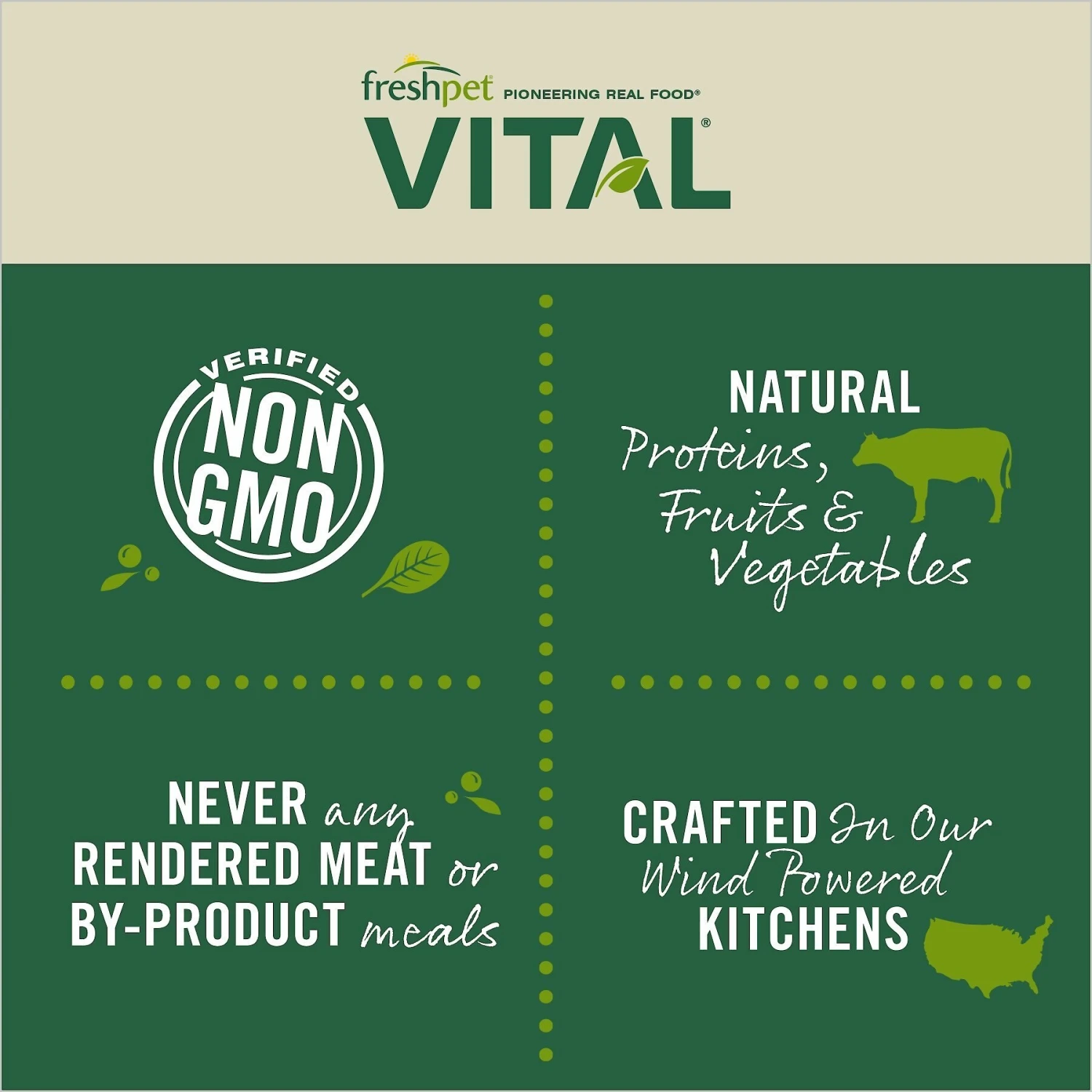 Bring a fresh approach to your little furry friend’s nutrition with Freshpet Vital Chicken Recipe Grain-Free Small Breed Fresh Dog Food! Even the pickiest pets love fresh meats and veggies. This grain-free recipe features bite-sized pieces packed with nutrient-rich protein, fruits and veggies, including 100% natural fresh chicken and antioxidant-rich sweet potatoes, cranberries and carrots. These wholesome ingredients are gently cooked, unlocking their nutritional benefits to help your small canine companion thrive and fulfill his high-energy needs. Our Fresh and Prepared Meals include products that are gently cooked and minimally processed. These meals are sure to excite and fulfill your furry friend’s cravings.