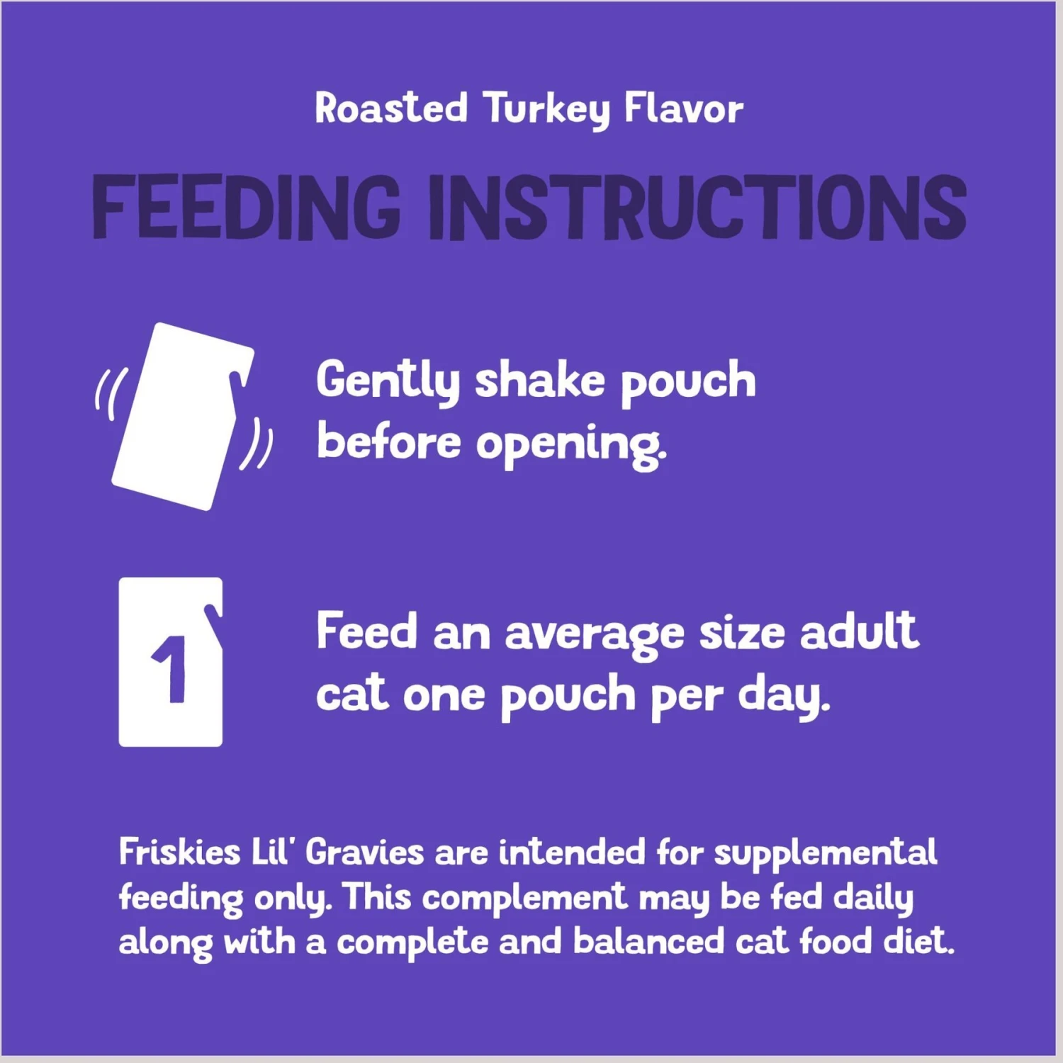 - Friskies Lil’ Gravies Roasted Turkey Flavor Cat Food Complement adds surprise and delight to mealtime.