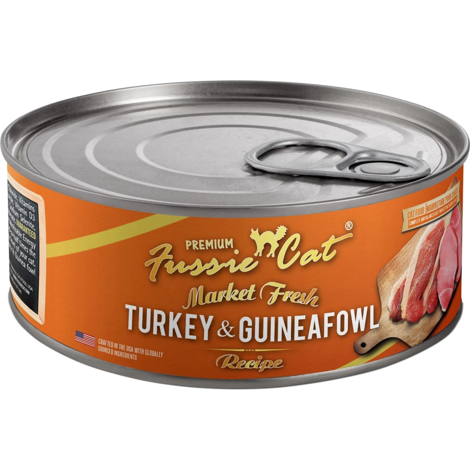 Your feline friend will be purring with delight once she tries this Fussie Cat Market Fresh Turkey & Guineafowl Wet Cat Food! This recipe is crafted with only the freshest and finest ingredients and contains the protein your kitty needs. Fussie Cat’s feline-approved Market Fresh recipes have been taste tested by cats—this wet cat food is so tasty it will be your cat companion’s new favorite meal!