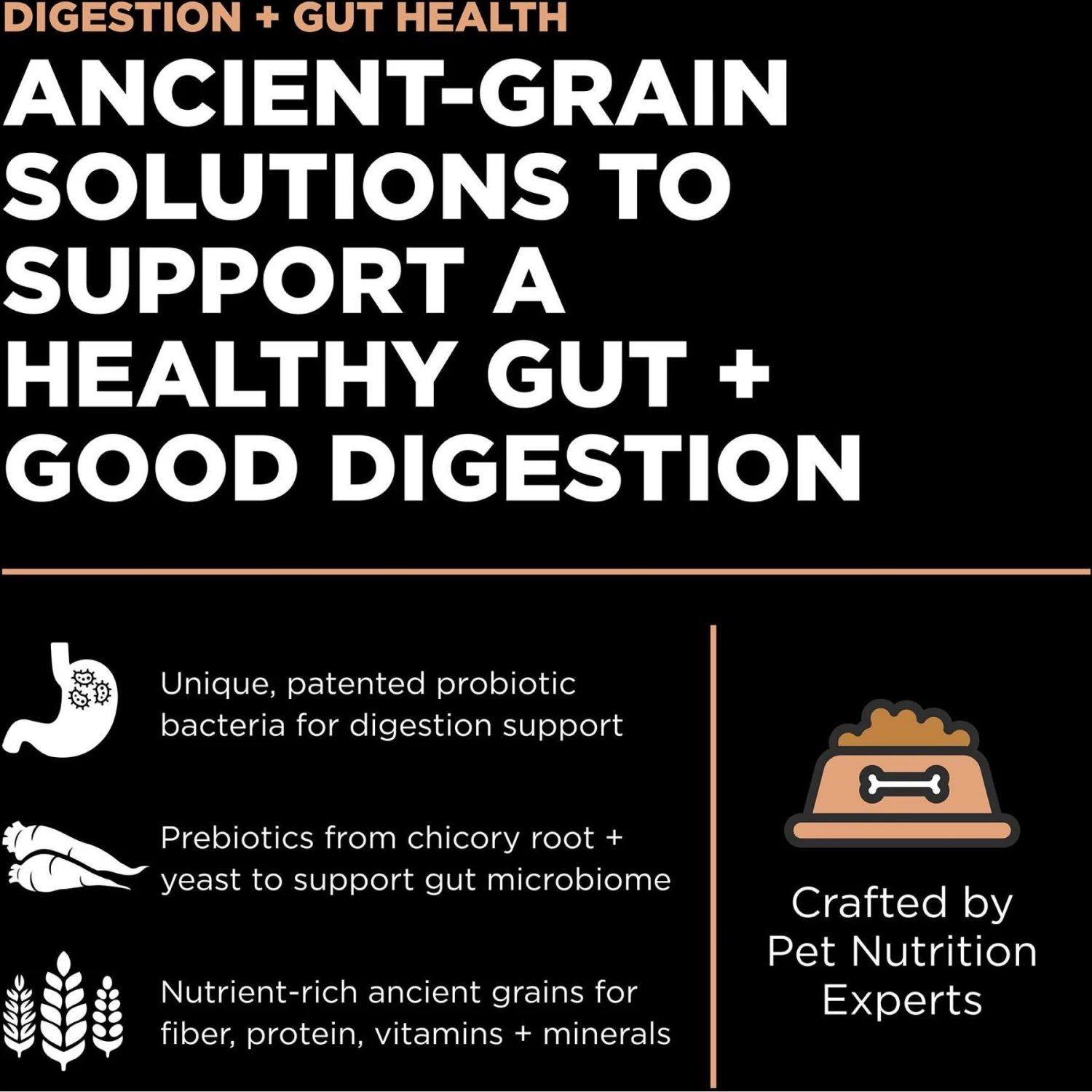 - Made with probiotics and prebiotic fiber from ancient grains to support digestion.