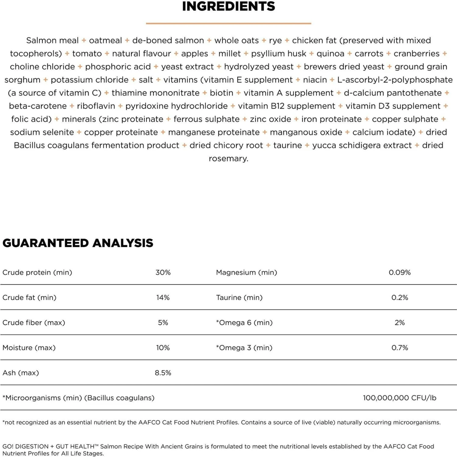 Keep your cat’s tummy on track with Go! Solutions Digestion + Gut Health Ancient Grains Salmon Recipe Dry Cat Food. It’s made with a unique blend of probiotics and prebiotic fiber sourced from ancient grains that promote a healthy and happy gut. This delicious, salmon flavored food supports your best bud’s digestion, boosts his immune system and helps maintain his healthy skin and coat. How purr-fect!