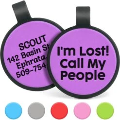 Enjoy the quiet with GoTags Silent Silicone I’m Lost! Call My People Personalized Dog ID Tag! Your pet pooch may be the bark of the town, but everyone in town will know who he is without the bothersome clanging of traditional metal tags. Designed in a fun variety of bright colors, the ID tag is made of durable, noiseless, feather-light silicone—meaning it won’t create a loud, jingling sound when your fur-iend moves. Wherever you and your pet pooch go, he’ll be safe and secure with his paw-sonalized dog tag that can display up to four lines of important information. The ID tag is wide for laser engraving of deep, easy-to-read, custom text on both sides. This creates a crystal-clear, permanent, and aesthetically pleasing appearance. Playful and quirky, it’s also designed to add character to your canine companion’s style, so his unique paw-sonality always shines. Although it’s made of bright, flexible silicone, the ID tag is not designed to be your pet’s chew toy. Simply attach it to your furry friend’s collar with the included split ring for paw-somely soundless identification.