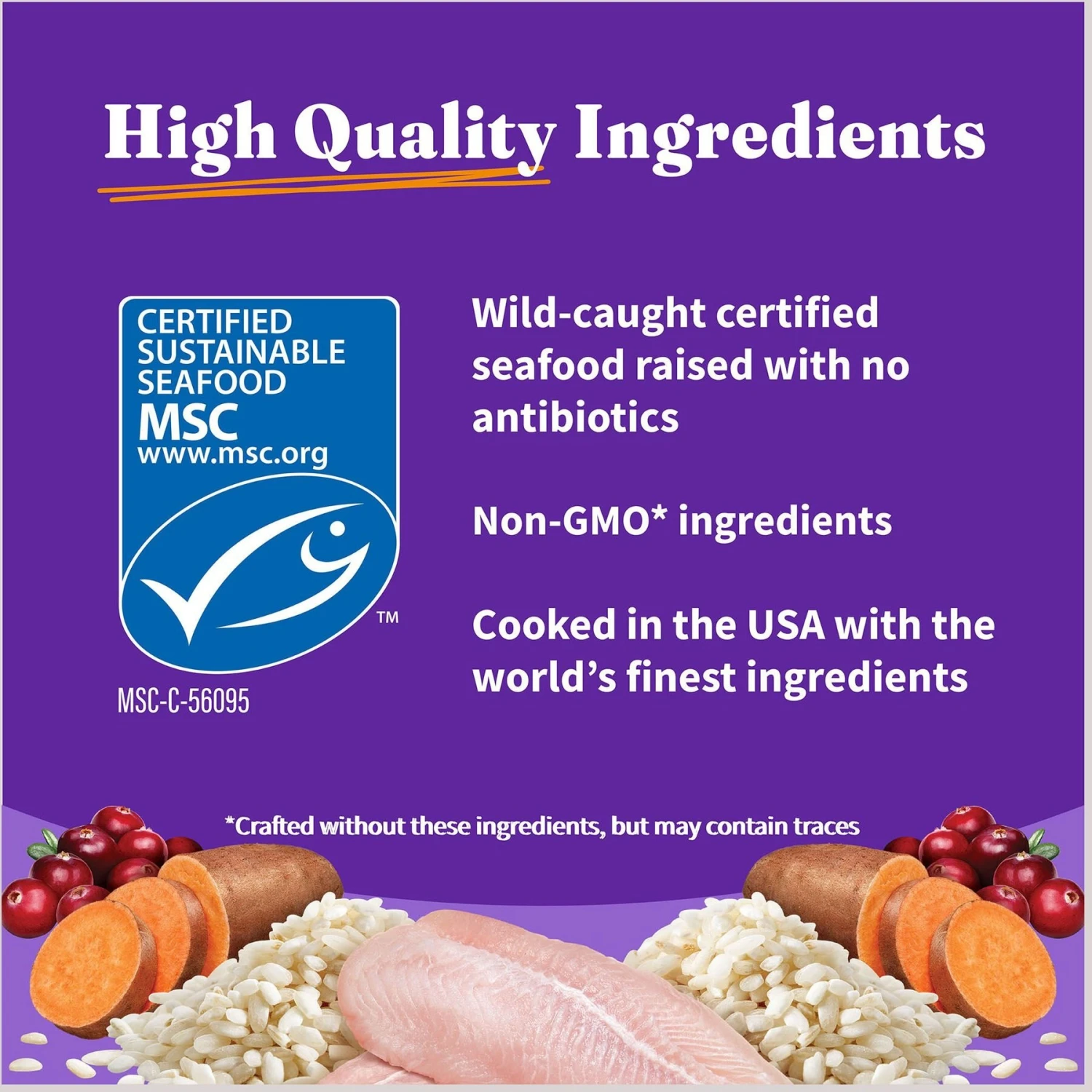 - Features real chicken, salmon, or turkey as the first ingredient.