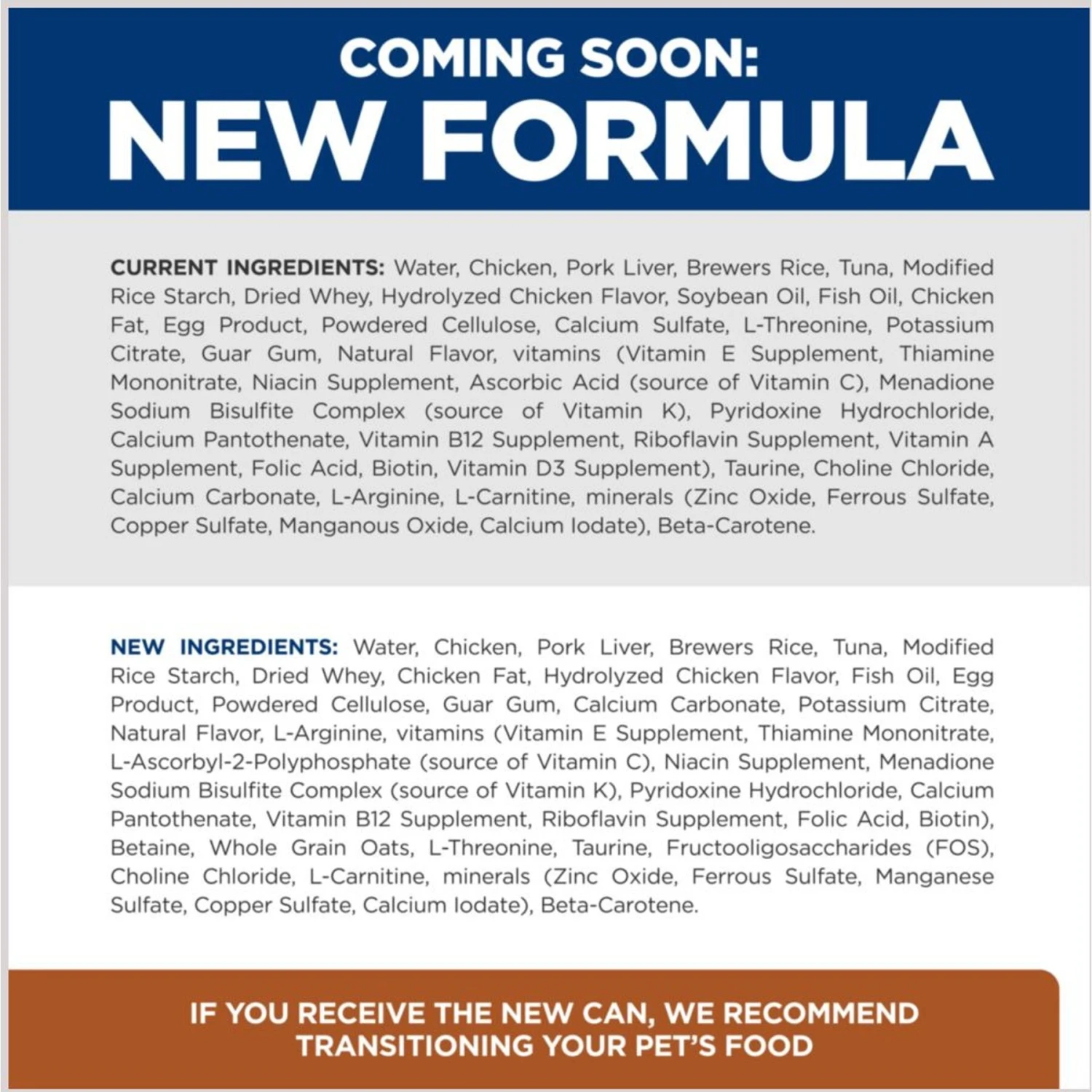 Hill’s Prescription Diet k/d Kidney Care Pate with Tuna Wet Cat Food, 5.5-oz, case of 24—Hill’s Prescription Diet k/d Wet Cat Food with ActivBiome+ Kidney Defense is specially formulated by nutritionists and veterinarians to help manage chronic kidney disease, or CKD. A proprietary blend of prebiotics activates the gut microbiome to help reduce harmful waste products within the intestinal and slow down the progression of the disease. In addition, high levels of essential amino acids and L-carnitine support your cat’s natural ability to build muscle mass. Made to please even the pickiest of eaters, this canned food is made with real tuna and has a smooth texture with an irresistible taste that cats love.
