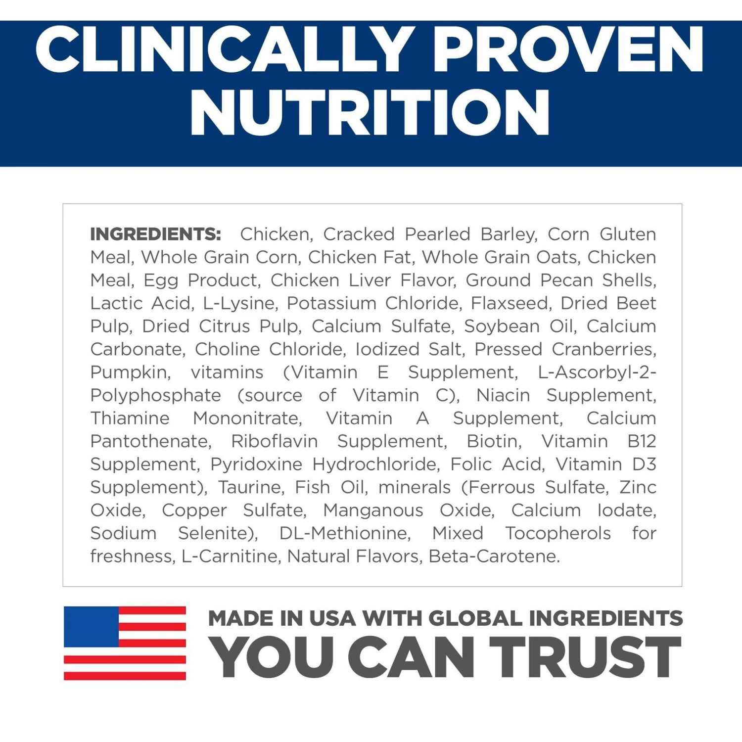 Potty problems will be a thing of the past with Hill’s Science Diet Adult 7+ Perfect Digestion Chicken Dry Cat Food. Formulated with real, yummy chicken, their exclusive ActivBiome+ Technology blend of prebiotics, whole grain oats, and pumpkin, this small-bite kibble is packed with nutrients that support digestive well-being—this means regular, healthy stools! In as little as seven days, you can simply and easily begin to support your older kitty’s gut microbiome for an overall happier pet.