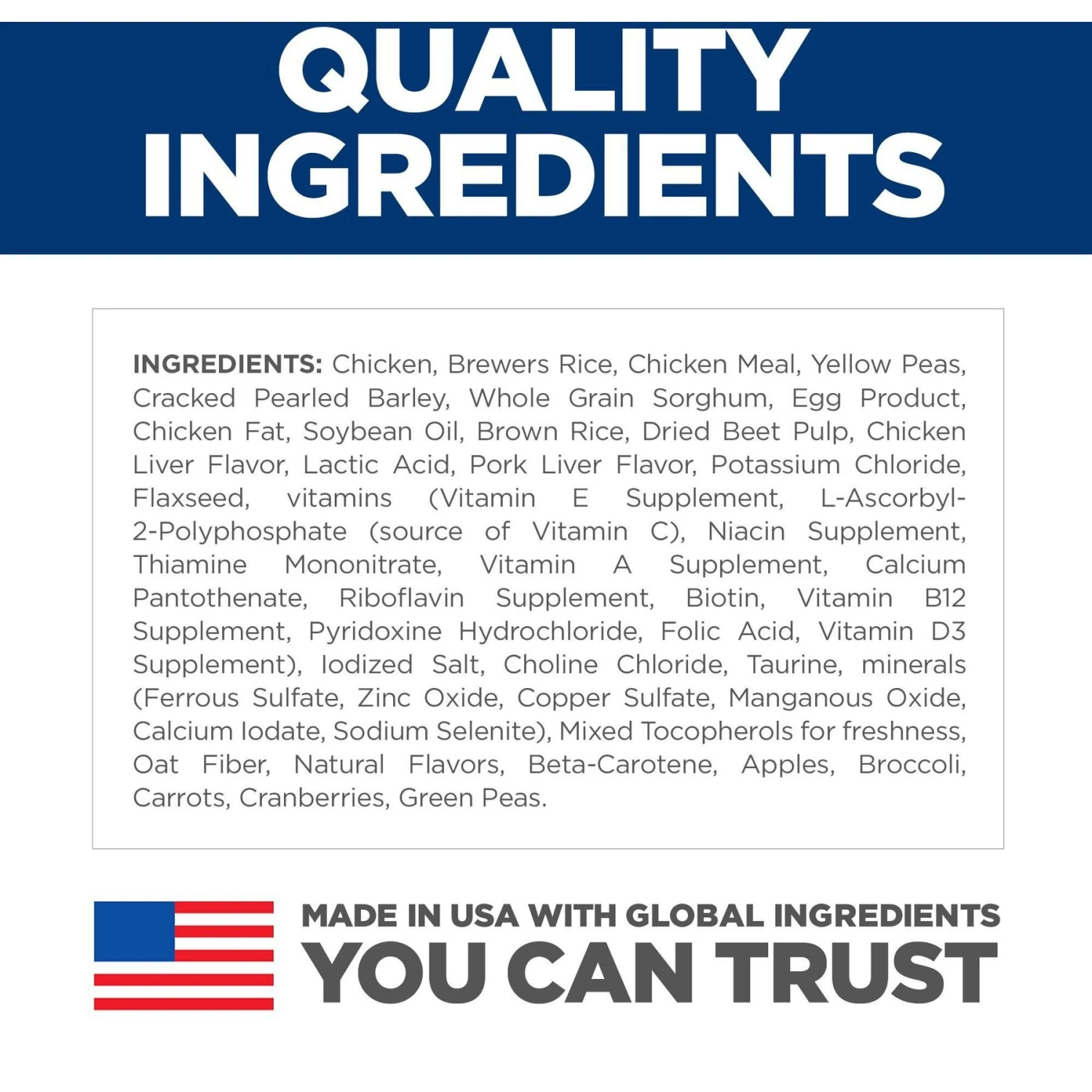 Satisfy your buddy’s chicken craving while also caring for his sensitive stomach and skin. Made in a larger kibble size for bigger breeds, Hill’s Science Diet Adult Sensitive Stomach & Skin Large Breed Chicken & Barley Recipe Dry Dog Food is specially formulated with highly-digestible natural ingredients – along with added vitamins, minerals and amino acids – so your furry friend can absorb all that goodness. What’s more, this wag-nificent recipe contains antioxidants to support the immune system, prebiotic fiber for a healthy gut and vitamin E and omega-6 for moisturized skin and a lustrous coat. Nourish your pampered pooch with a kibble that lets her flourish!