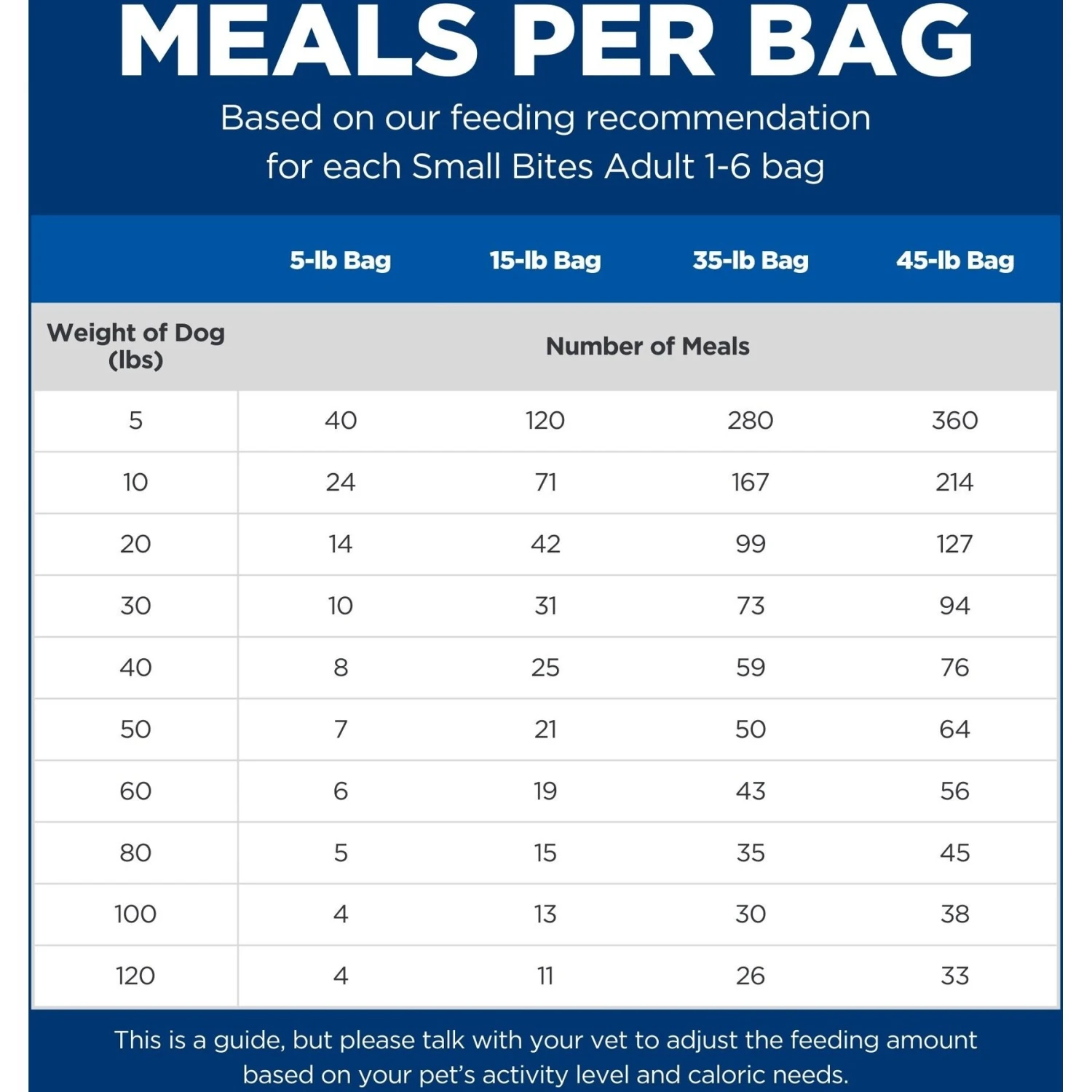 - Recommended for small adult dogs 1-6 years of age with a small kibble size.