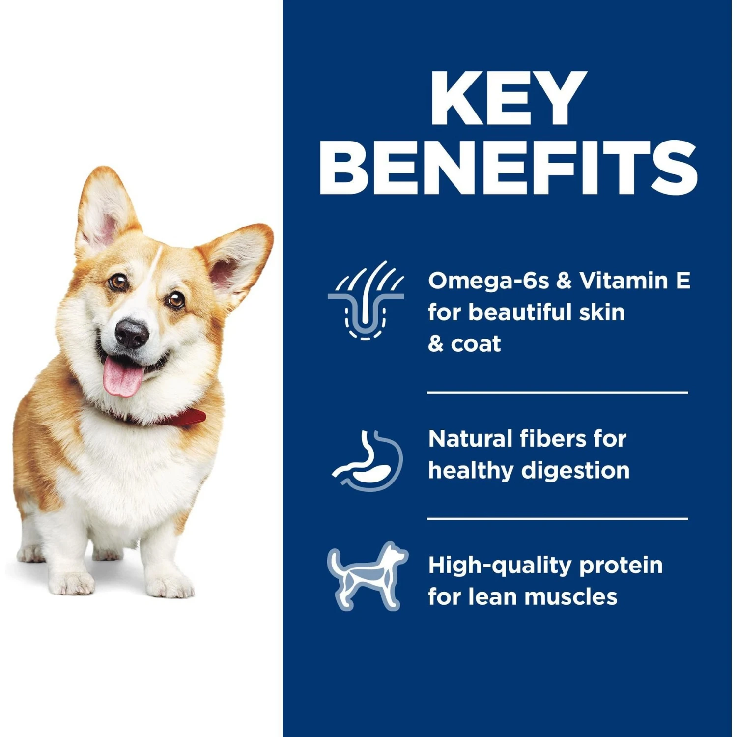Give your small dog precisely balanced nutrition for a visible difference with the Hill’s Science Diet Adult Small Bites Chicken & Barley Recipe Dry Dog Food. Made with an exclusive blend of omega 6 fatty acids and other nourishing nutrients, this recipe promotes a noticeably shiny coat in just 30 days—and the small kibble size is perfect for tiny mouths. There’s also fresh chicken to maintain strong, lean muscles and an ideal body condition, and a clinically proven blend of antioxidants for a healthy immune system. The natural, high quality ingredients make it easy to digest, making this food an excellent choice for your fit-minded dog.