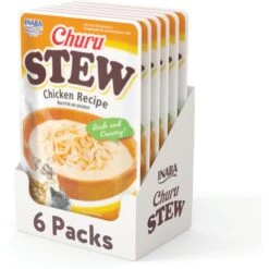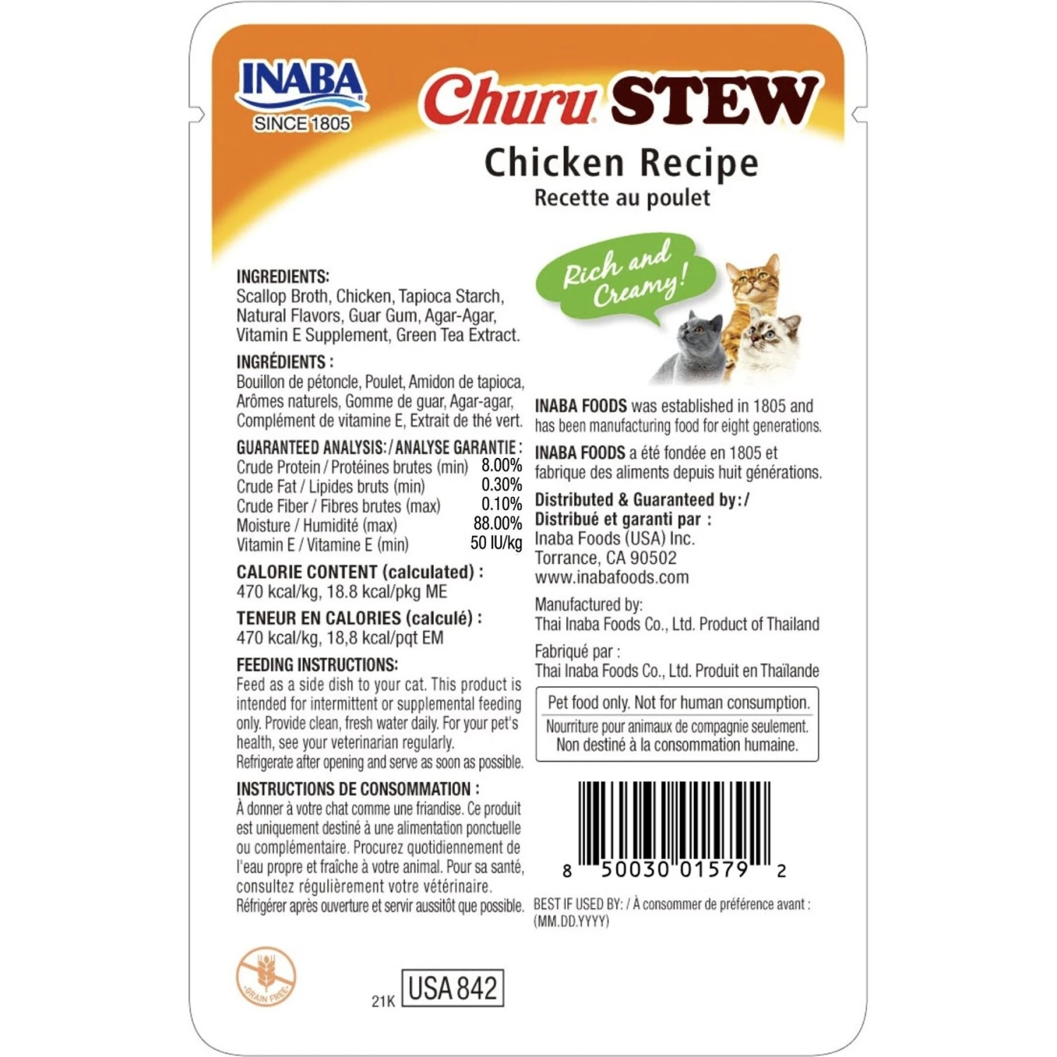 - Churu Stew is a rich and creamy purée like original Churu lickable cat treats, but with a thicker consistency and shreds of farm-raised chicken that’s perfect to serve as a side dish.