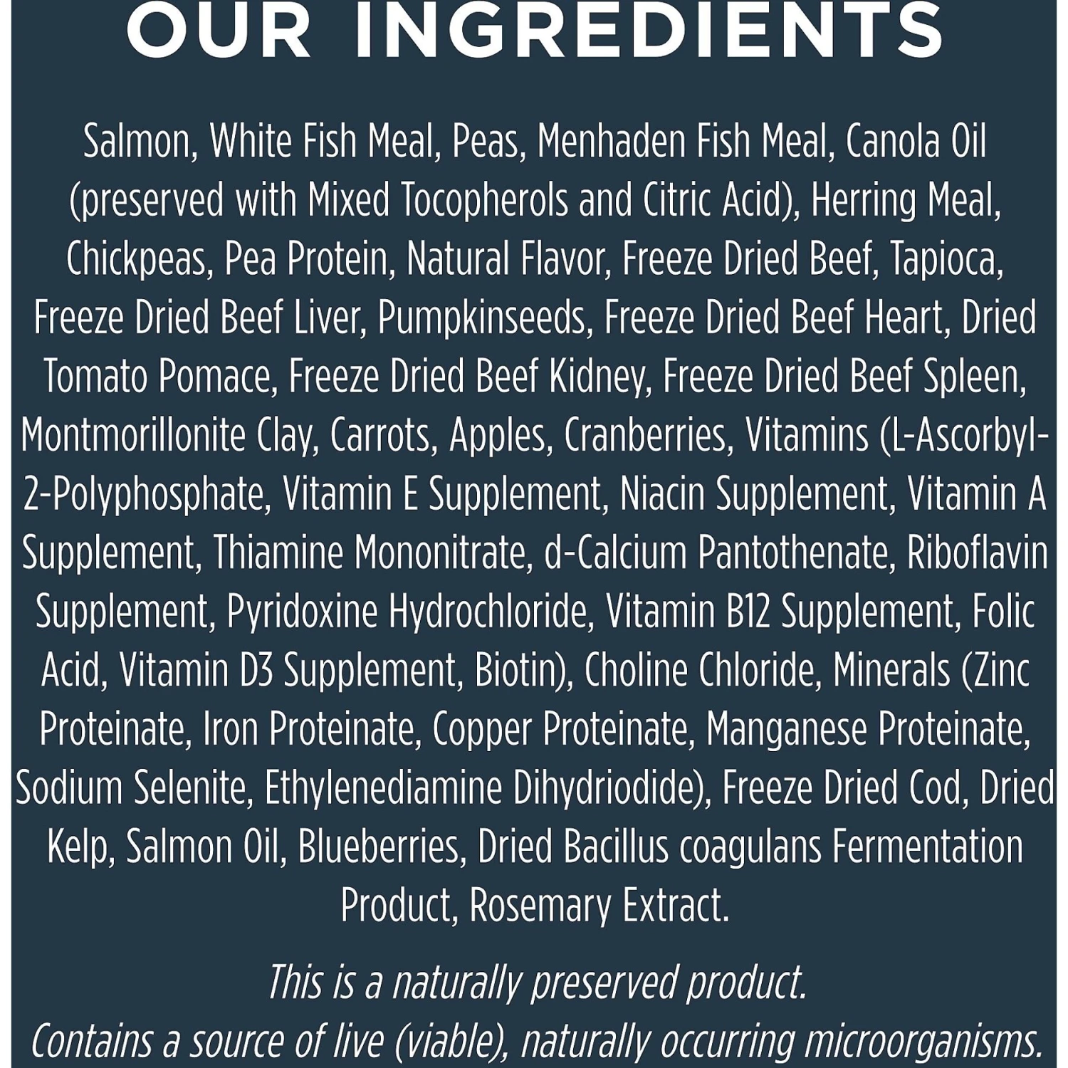 - Grain-free combination of high-protein kibble and freeze-dried raw ingredients provide tasty variety in every bowl.