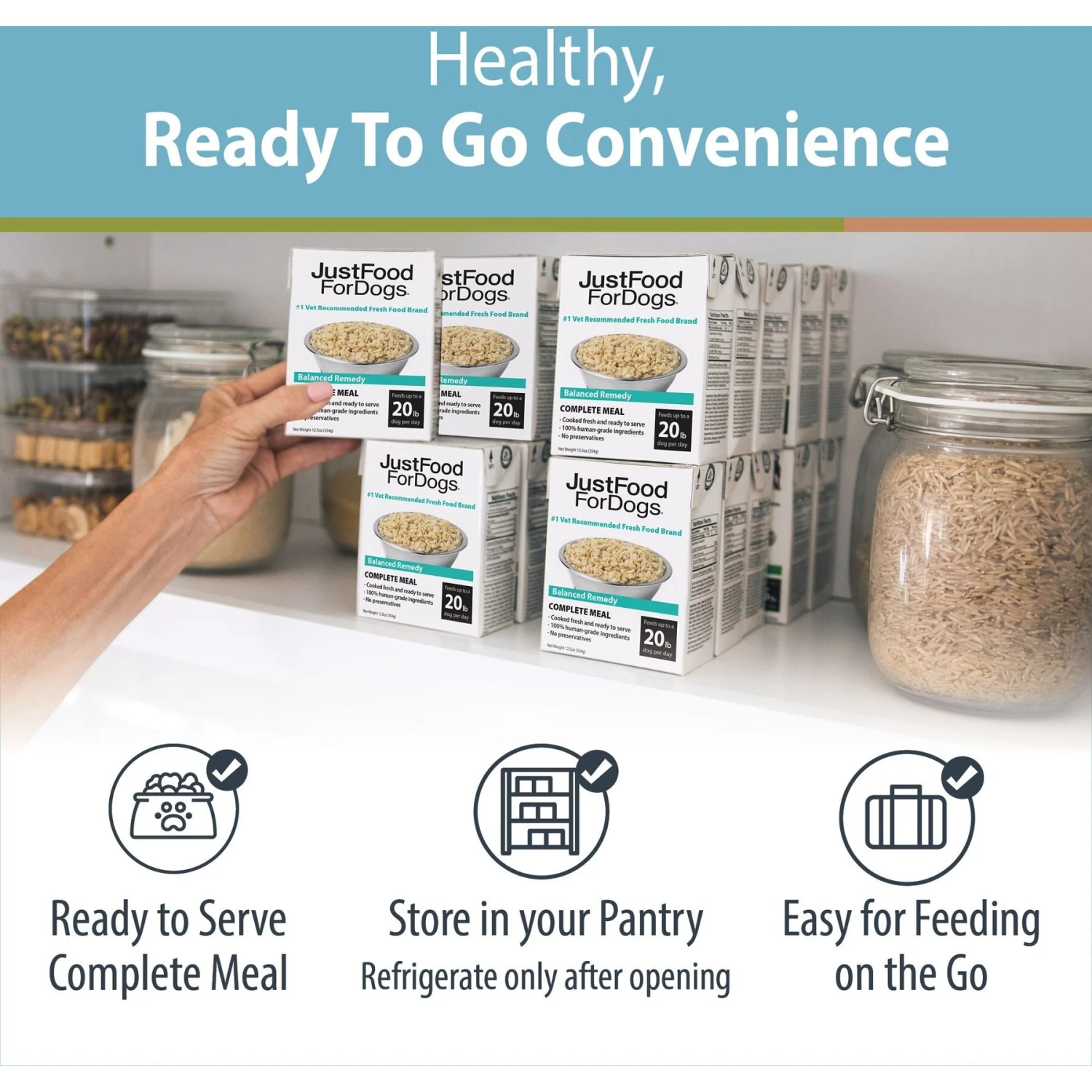Help your pet experience the joy of a healthy life with this JustFoodForDogs PantryFresh Balanced Remedy Recipe Fresh Dog Food. Formulated to support your dog’s gastrointestinal health, this food delivers high digestibility, low fat levels and features single protein and starch sources. But the goodness doesn’t stop there, because it’s also made with human-grade ingredients that you can see! With ground turkey breast, long-grain white rice, sushi rice, sunflower oil, coconut oil, flaxseed oil, and Icelandic premium fish oil, your dog will get to experience the benefits of a whole food diet. And since Pantry Fresh meals are sold in innovative Tetra Pak packaging, they are completely free from preservatives, come ready to serve and can be stored unopened on the shelf for up to two years. It’s the most convenient way to feed your dog a fresh, whole food diet! Ask your veterinarian how JustFoodForDogs’ Balance Remedy recipe can help support your dog’s gastrointestinal health!