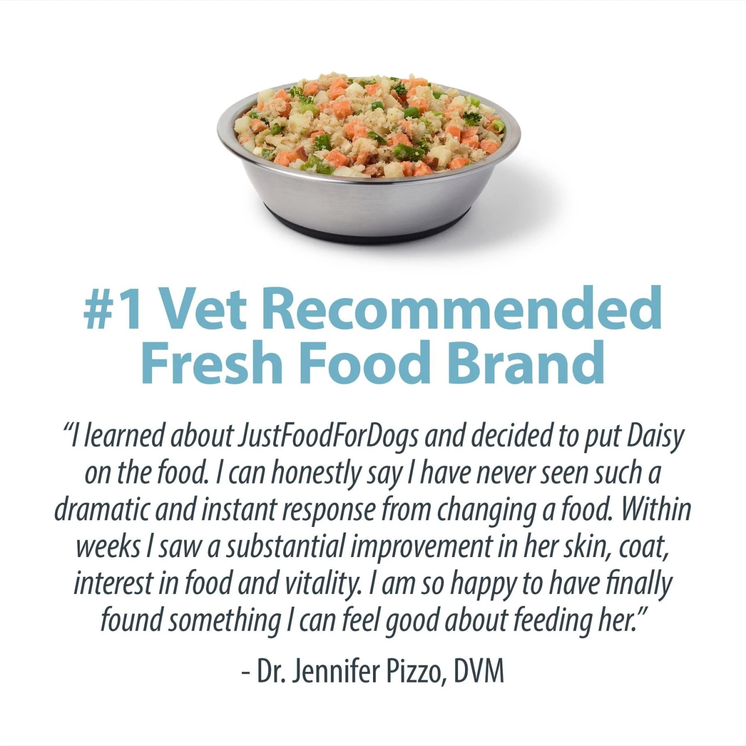 With the JustFoodForDogs Sensitive Skin & Stomach Fresh Dog Food, your furbaby will enjoy all the benefits of a fresh, whole food diet designed to support skin and stomach health. Recipes including Fish and Sweet Potato, Venison and Squash, Balanced Remedy and Joint and Skin support deliver paw-some variety for su-paw tasty mealtimes. Designed just for pups with skin and stomach sensitivities, these recipes are highly digestible. They’re free of common allergens like corn, wheat, soy, chicken, beef, dairy and eggs, helping to address skin irritations from the inside-out. They’re also packed with good stuff like essential vitamins, chelated minerals and antioxidants to support your best friend’s immune health.