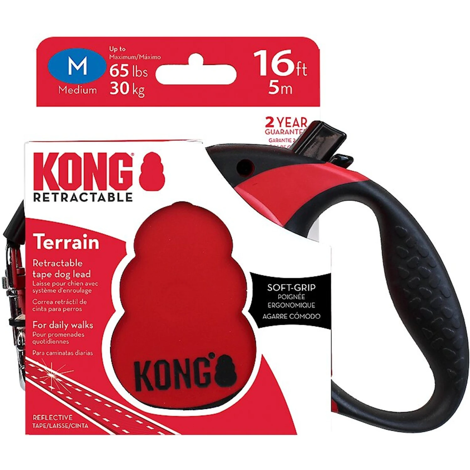 Remember to measure your pet for the paw-fect fit. Help make daily walks with your dog even better with the KONG Retractable Terrain Reflective Retractable Dog Leash. This leash has a soft grip handle and extends to a comfortable length, giving your pup just enough freedom to roam, while also giving you control with the ability to brake and lock the leash as needed. It’s also designed with color-coordinated, wide tape with reflective stitching to help keep your fur-iend safe and visible as you stroll down your favorite trails.