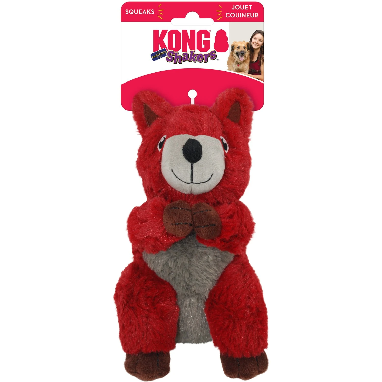 Your pup will love snuggling up with the irresistibly soft KONG Shakers Passports Red Squirrel Squeaky Plush Dog Toy. The soft material and cuddly shape are perfect for curling up with during dreams of romps in the British forest. When your dog’s snooze is over and she’s ready for some gentle play, the fun squeaker and rattle noises will engage your dog’s natural instincts. It’s a great toy to have on hand for naptime and playtime alike!