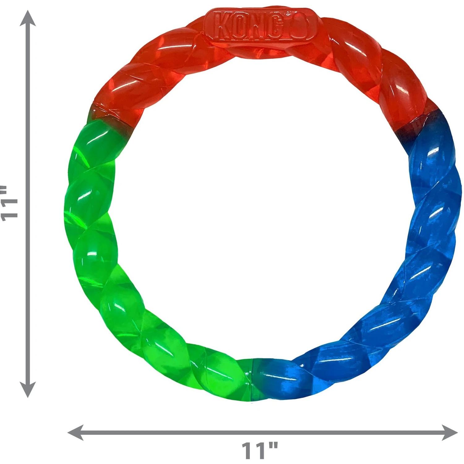 Ring in the fun with the KONG Twistz Ring Dog Toy! This toy features a uniquely textured surface for easy grabbing, paw-fect for games of tug and for retrieving. This ring of fun has just enough flexibility to make for tempting tugging and bouncy rebounds. It flexes and bounces for games of tug between you and your furbaby or between your furbaby and his doggy friends. Heading to the lake? This toy floats for games of water fetch. It’s also highly durable, so it’s ideal for even the most enthusiastic and playful pups.