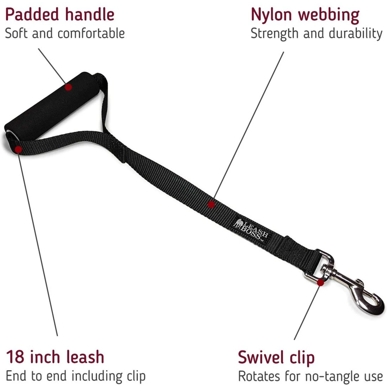 - Short dog leash features a padded traffic handle and gives you extra control when pulling your pup.